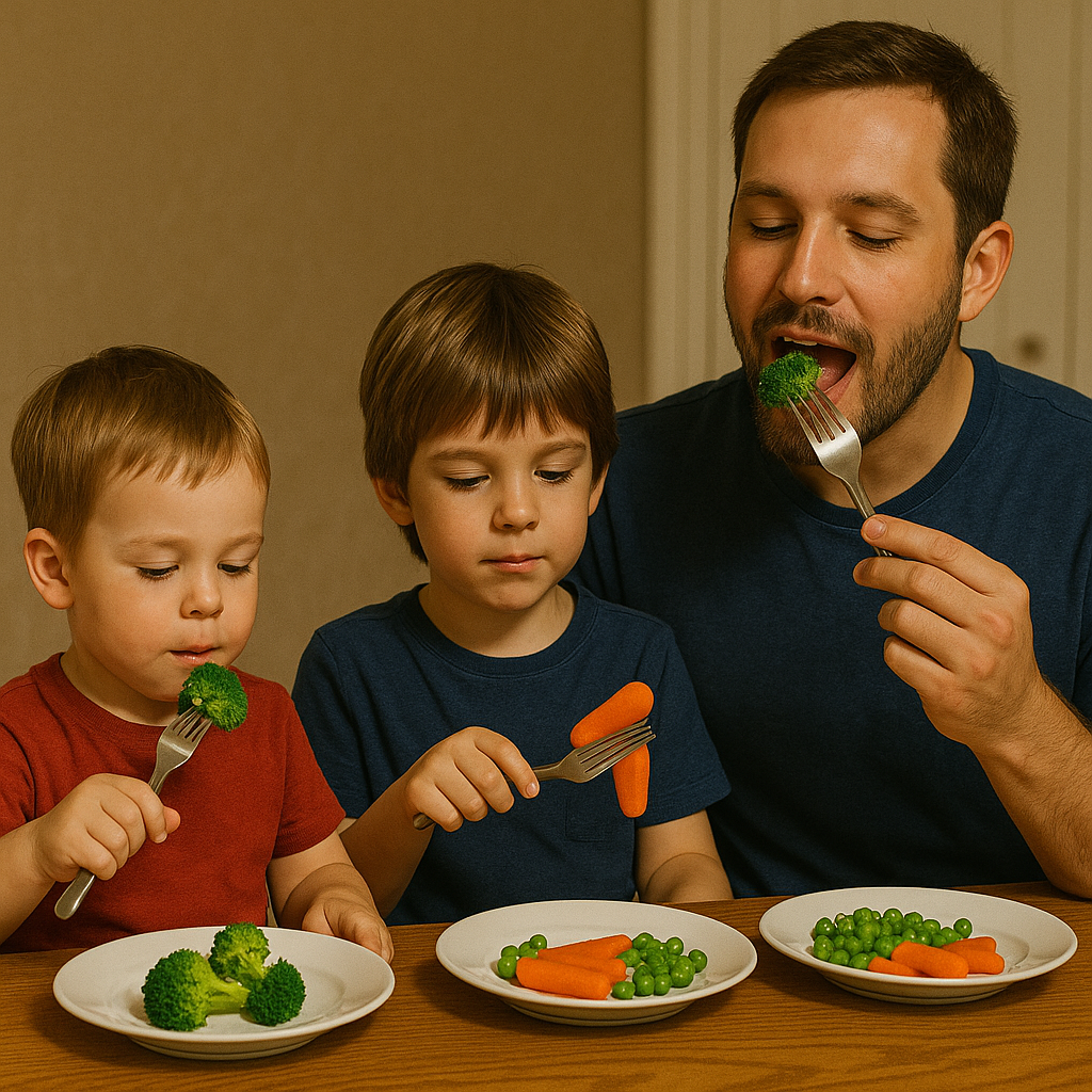 Когда в семье трое детей, каждый прием пищи — это маленький спектакль. Иногда комедия. Иногда трагедия. Иногда — триллер с элементами фэнтези. В один такой вечер, сидим мы за столом. Миша давит ложкой брокколи, Максим мрачно ковыряет морковку, а Даша машет ложкой, как дирижер, и устраивает концерты. И тут Максим, с видом великого биолога, выдает: — Я не ем овощи. Они невкусные. И всё равно я вырасту. Муж, пытаясь быть дипломатичным: — Ну… ты хочешь быть высоким, как папа? Максим: — Хочу. Но без брокколи. А у меня в голове уже тревожный колокол: железо, кальций, белок… гормон роста, иммунитет… А вдруг? А если не дорастёт? И в ту же ночь, с телефоном под одеялом, я наткнулась на шикарную статью: «10 продуктов, которые стимулируют рост детей». Пункты простые, логичные и такие понятные даже ребёнку. Лаконично объяснено, зачем нужны молочные, почему важны бобовые, какие жиры "правильные", и почему вода — это не просто «просто вода». Идея пришла мгновенно: устроили "научную неделю". Каждый д