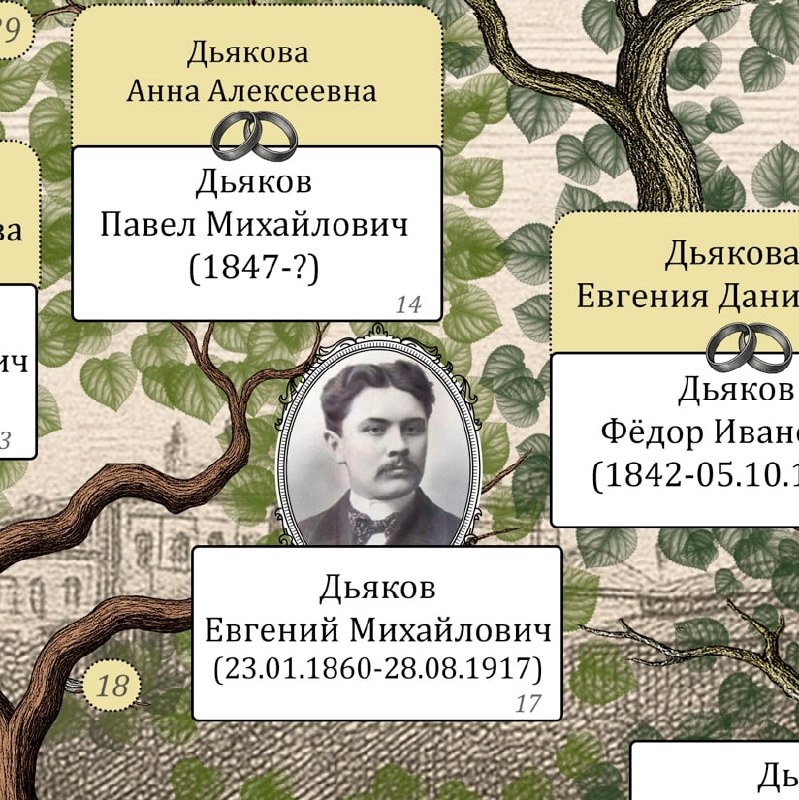 Нарисовала древо для Дьяковых. 68 человек, 180 слоев в фотошопе, 150 лет истории