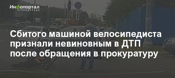 Руководство зеленоградской Госавтоинспекции отменило ранее принятое решение о виновности велосипедиста в ДТП на Солнечной аллее в июле прошлого года, поддержав обращение пострадавшего в московскую прокуратуру. Какие доводы в свою защиту привел велосипедист, смотрите в публикации Инфопортала. подписаться / обсудить в чате