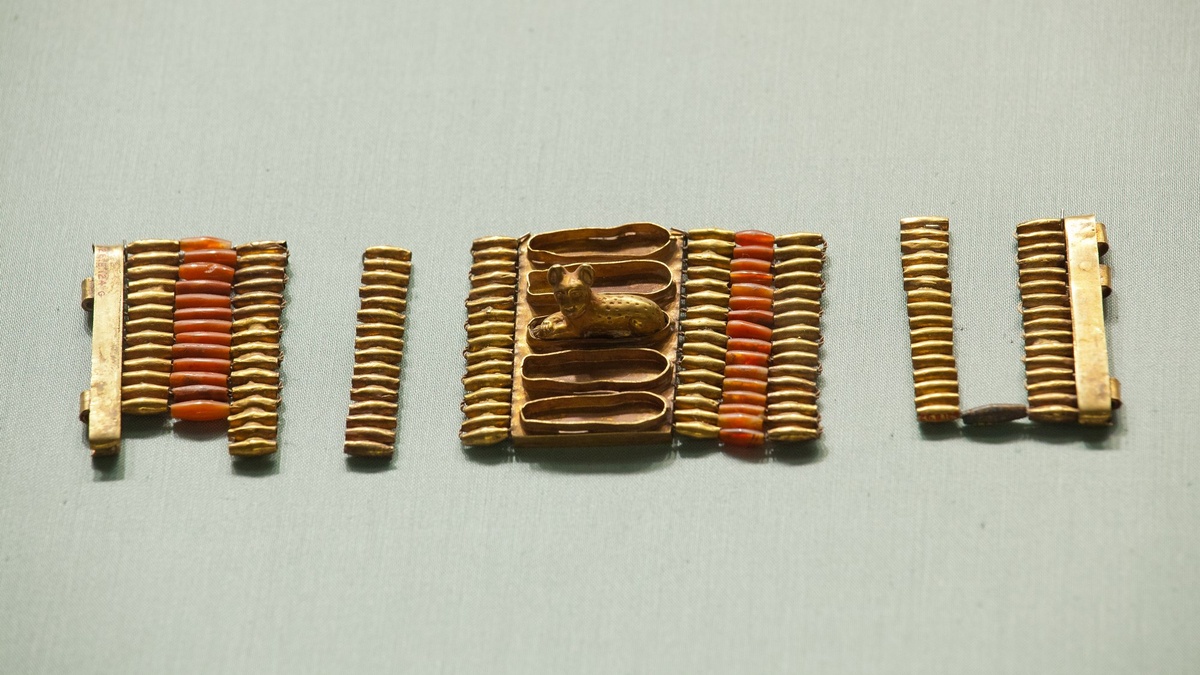 Этот великолепный браслет из золота и драгоценных камней, созданный в эпоху правления Тутмоса III, словно обнимает запястье, оставляя шлейф мистики. Каждый амулет с изображением львёнка не просто украшение, а защитник, несущий силу и благородство диких зверей. Его сияние, переплетённое с красным сердцем карнеоля и голубизной лазурита, говорит о том, что искусство было не просто ремеслом, а живым диалогом между человеком и божественным.