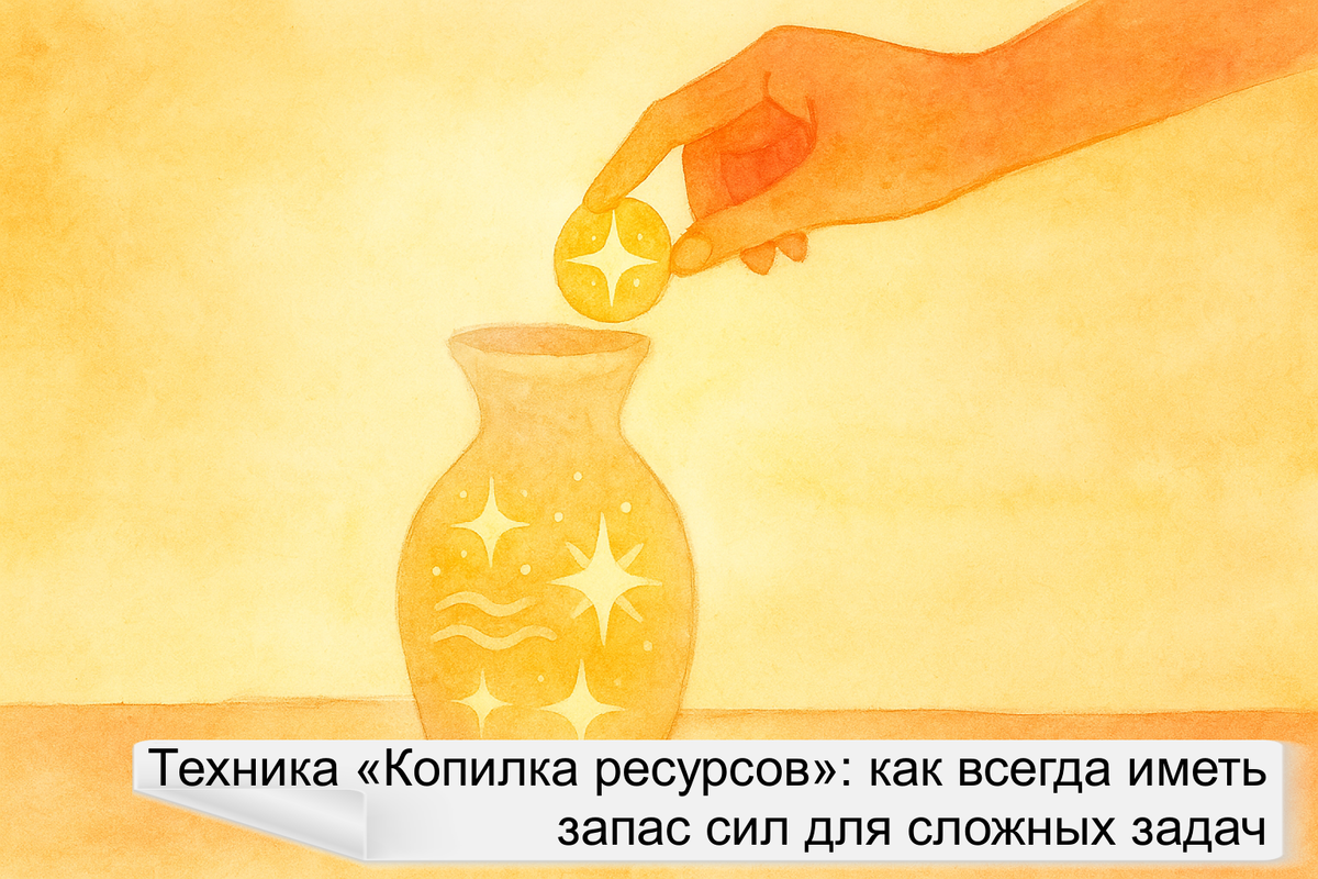 Бывало ли у вас такое, что силы на исходе, дедлайн на носу, а внутренняя батарейка давно села? Чувствуете, что отдаете больше, чем получаете, и любая мелочь выбивает из колеи? Что если бы у вас был персональный источник энергии, к которому можно обратиться в любой момент? Именно для этого и создана техника «Копилка ресурсов». «Копилка ресурсов» – это практика осознанного накопления и сохранения воспоминаний о моментах, которые наполняют нас энергией, радостью и чувством удовлетворения. В отличие от финансовой копилки, мы собираем не монеты, а ценные переживания и приятные ощущения. Цель метода: создать свой собственный архив состояний, где можно почерпнуть силы в периоды усталости, стресса или выгорания. Это своеобразный эмоциональный иммунитет, который мы формируем сами для себя через внимание к хорошему. Начать пользоваться этим методом очень просто. Возьмите себе за правило ежедневно или несколько раз в неделю записывать в специальный блокнот или файл те небольшие события, которые п