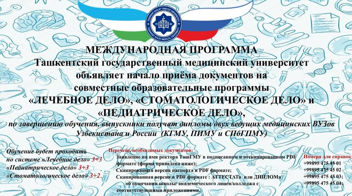 Π°Π½ΠΈΠ·ΠΌ ΠΎΠ±ΡΡΠ΅Π½ΠΈΡ: 3 Π³ΠΎΠ΄Π° β Π£Π·Π±Π΅ΠΊΠΈΡΡΠ°Π½ 3 ΠΈΠ»ΠΈ 2 Π³ΠΎΠ΄Π° β Π ΠΎΡΡΠΈΡ βοΈΠ‘ΠΎΠ²ΠΌΠ΅ΡΡΠ½ΠΎ Ρ Π‘Π°Π½ΠΊΡ-ΠΠ΅ΡΠ΅ΡΠ±ΡΡΠ³ΡΠΊΠΈΠΉ Π³ΠΎΡΡΠ΄Π°ΡΡΡΠ²Π΅Π½Π½ΡΠΉ ΠΏΠ΅Π΄ΠΈΠ°ΡΡΠΈΡΠ΅ΡΠΊΠΈΠΉ ΠΌΠ΅Π΄ΠΈΡΠΈΠ½ΡΠΊΠΈΠΉ ΡΠ½ΠΈΠ²Π΅ΡΡΠΈΡΠ΅Ρ (Π³. Π‘Π°Π½ΠΊΡ-ΠΠ΅ΡΠ΅ΡΠ±ΡΡΠ³) πΠΠ°ΠΏΡΠ°Π²Π»Π΅Π½ΠΈΡ: Β«ΠΠ΅ΡΠ΅Π±Π½ΠΎΠ΅ Π΄Π΅Π»ΠΎΒ» (3+3) Β«Π‘ΡΠΎΠΌΠ°ΡΠΎΠ»ΠΎΠ³ΠΈΡΒ» (3+2) Β«ΠΠ΅Π΄ΠΈΠ°ΡΡΠΈΡΒ» (3+3) βοΈΠΠ΅Ρ