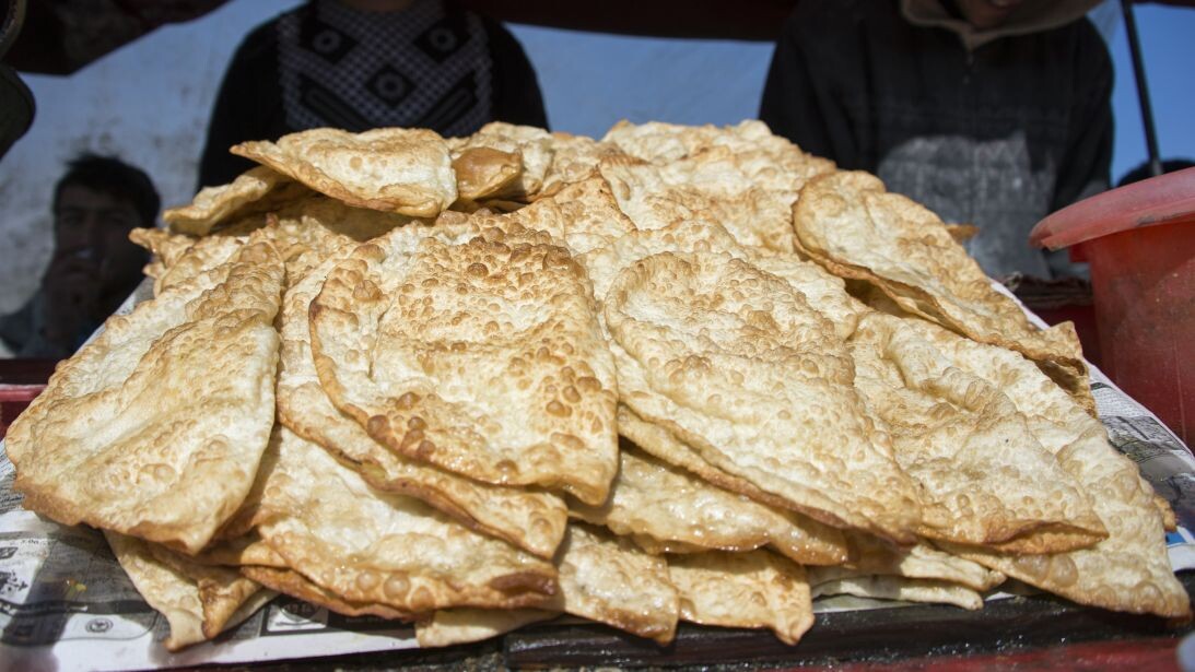 Афганский хлеб «болани» представляет собой жареный хлеб с начинкой из картофеля, который часто продают уличные торговцы.