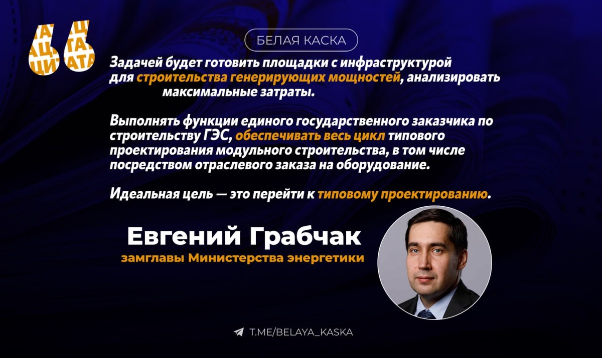 Выполнять функции единого государственного заказчика по строительству ГЭС, обеспечивать весь цикл типового проектирования модульного строительства, в том числе посредством отраслевого заказа на оборудование.