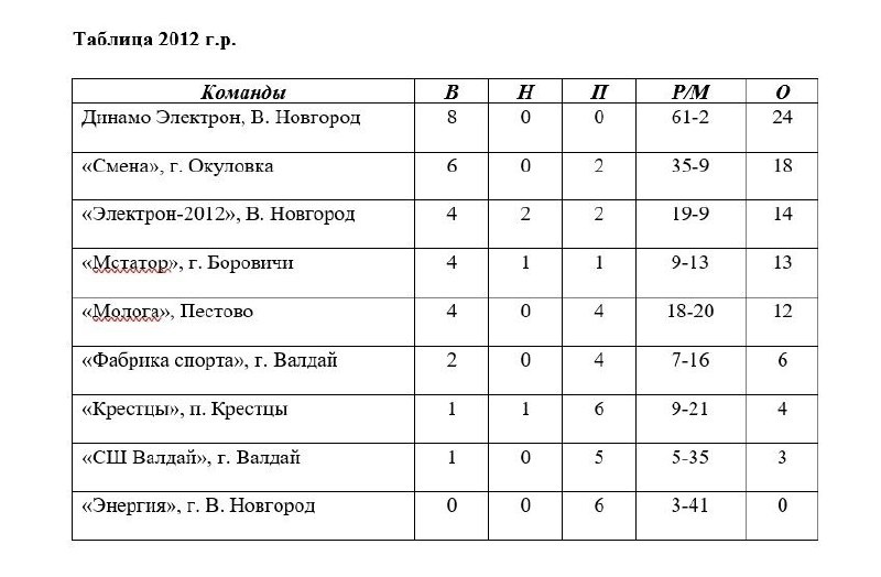 📉 Турнирные таблицы чемпионата новгородской области ✔️⚽️🏆 по футболу среди юношей 2012 года рождения и 2014