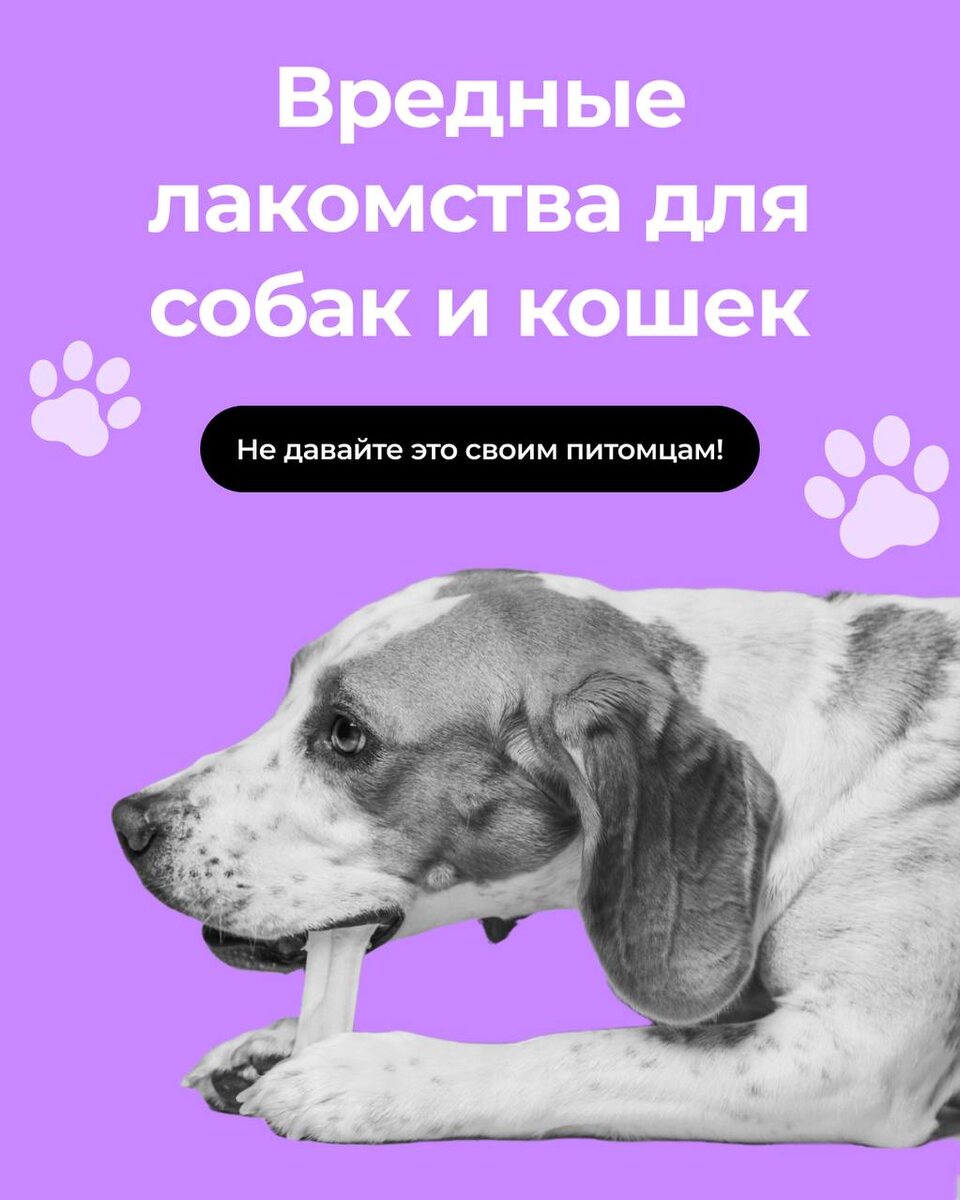 🚫 Вредные лакомства для собак и кошек: не давайте это своим питомцам 🚫 Мы все любим баловать наших питомцев, но далеко не все, что вкусно для нас, полезно (а порой и безопасно!) для них. 🐶🐱 Сегодня поговорим о самых вредных лакомствах, которые ни в коем случае нельзя давать собакам и кошкам! 👇 🚨 Стоп-лист для собак: • Шоколад 🍫: Содержит теобромин, токсичный для собак. Может вызвать рвоту, диарею, учащенное сердцебиение и даже смерть! • Виноград и изюм 🍇: Могут вызвать почечную недостаточность. 🥺 • Лук и чеснок 🧅🧄: Токсичны для собак в любом виде (сырые, вареные, сушеные). Могут привести к анемии. • Ксилит (заменитель сахара)🍬: Содержится в жевательной резинке, конфетах и некоторых продуктах для диабетиков. Вызывает резкое падение уровня сахара в крови и может привести к печеночной недостаточности. 💀 • Авокадо 🥑: Содержит персин, который может быть токсичным для собак в больших количествах. • Кости (особенно вареные)🦴: Могут расщепляться на острые осколки и пов