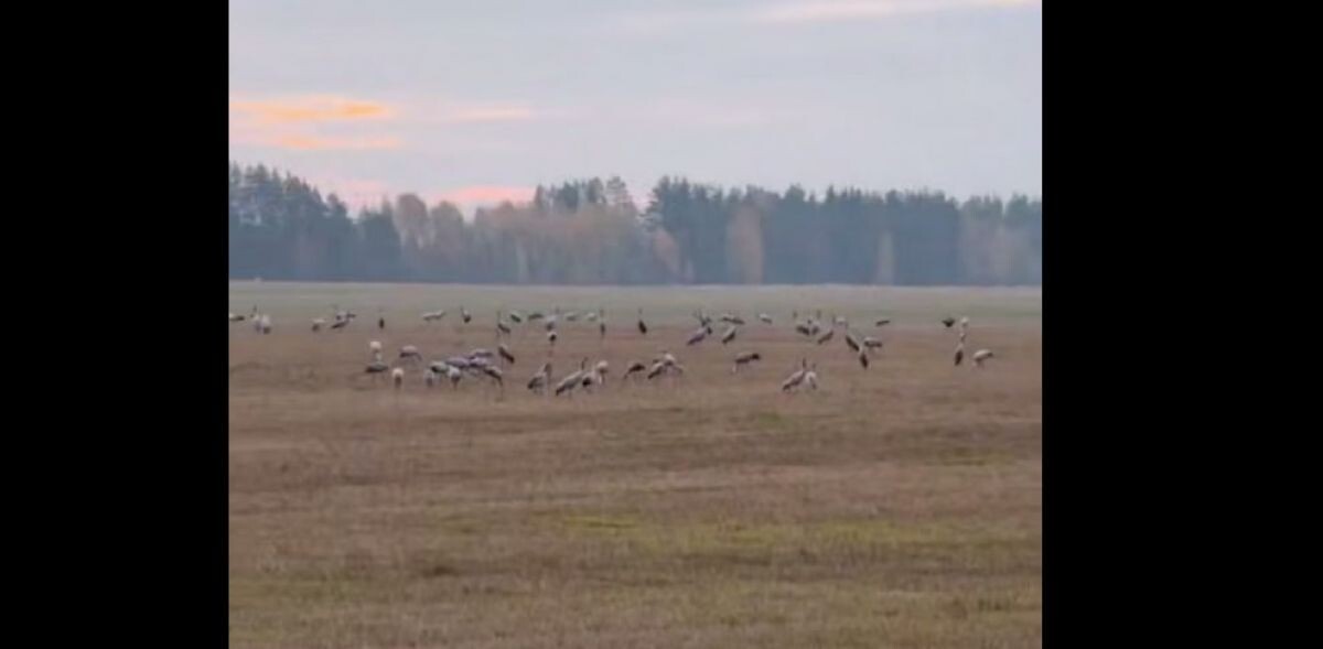 В полях Рязанского района заметили стаю серых журавлей
