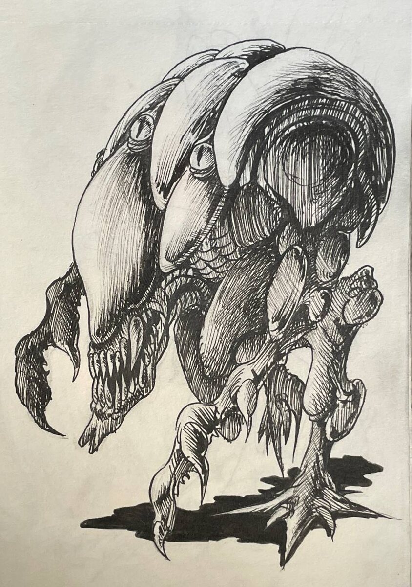 Олдовый не названный монстрос. Экспериментировал с дизайном инопланетных тварей и вдохновлялся инвидами из старого мульта Роботек или космооперы Макросс: сага. В разных странах название разное.