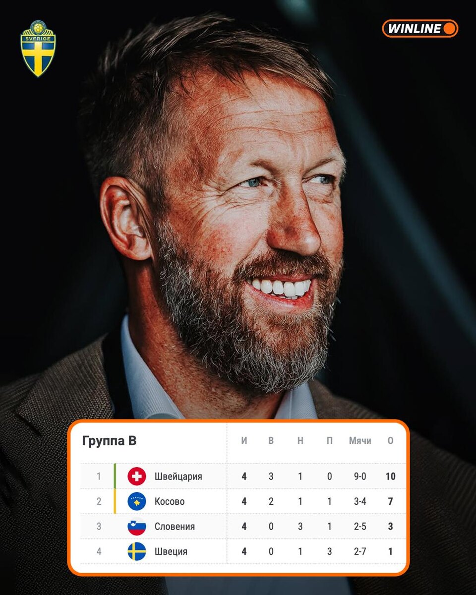 🇸🇪 Грэм Поттер возглавил сборную Швеции! Английский волшебник заключил контракт до марта 2026-го с автоматической опцией продления в случае выхода на ЧМ. До конца отборочного этапа — два тура, Швеция идет на последней строчке, а до зоны стыков еще 6 очков. Поттер — Шалимов по-английски?