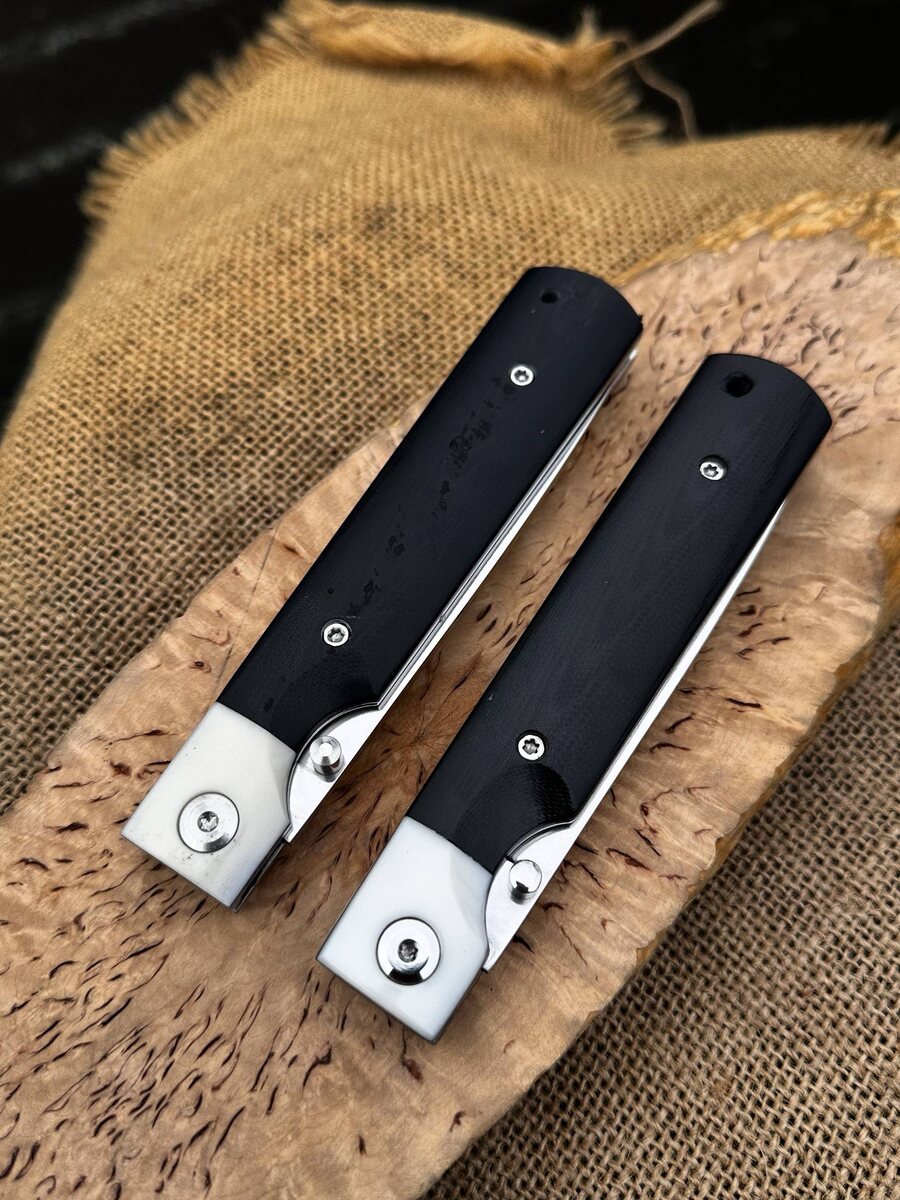 - Рукоять из чёрного граба и белого акрила — не только эффектно, но и удобно лежит в руке.