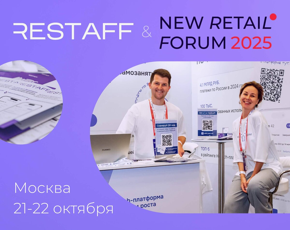 ✨Уже завтра в Москве стартует New Retail Forum – главное место встречи российских ритейлеров. Во время масштабного делового события участники обсудят новые бизнес-модели, развитие интернет-торговли, диджитализацию, IT-инфраструктуру ритейл-рынка, передовые решения для роста продаж и многое другое. ⭐️ReStaff – один из участников и гостей форума. Мы расскажем, как: ✅легально и безопасно платить фрилансерам в 190+ странах мира; ✅автоматизировать документооборот; ✅снизить нагрузку на HR и бухгалтерию; ✅ускорить работу и повысить эффективность вашего бизнеса; ✅поделимся инсайтами в работе с внештатными командами. 🤝Ждем всех на нашем стенде! 📍21-22 октября Конгресс-центр Альфа Москва, Измайловское шоссе 71 До встречи на полях форума!