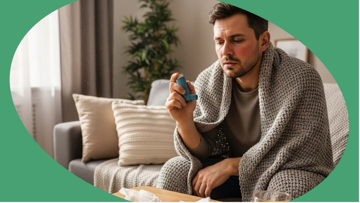 На первый взгляд всё похоже на обычное ОРВИ: насморк, лёгкая температура, першение в горле. Но у человека с астмой простуда нередко развивается иначе. К привычным симптомам добавляется сухой и навязчивый кашель, который не проходит неделями. Он часто усиливается ночью или после физической нагрузки, а иногда сопровождается чувством стеснения в груди и свистящим дыханием [1,3].