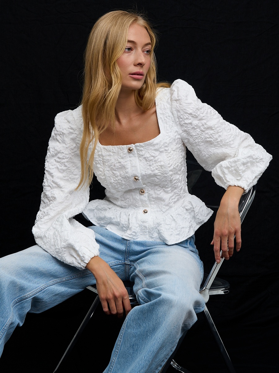 У многих в шкафу есть вещи, которые вроде бы красивые, но носить их непонятно как. Белая жаккардовая блузка — одна из них. Жаккард — это плотная, фактурная ткань, где узор не напечатан, а как бы выткан на поверхности. Выглядит это объемно, сложно и довольно нарядно. Как носить жаккард, чтобы он выглядел современно? Главное правило — уравновесить его.