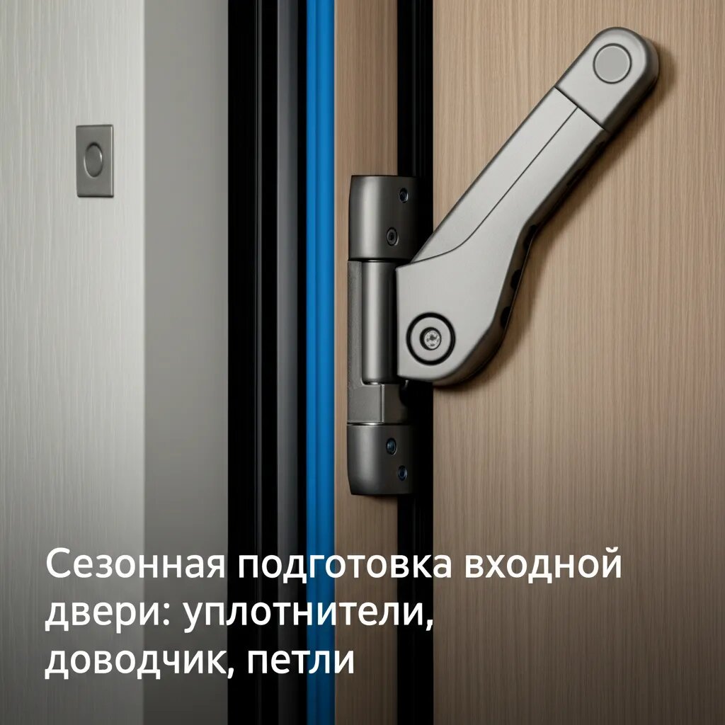 Иллюстрация: Сезонная подготовка входной двери: уплотнители, доводчик, петли