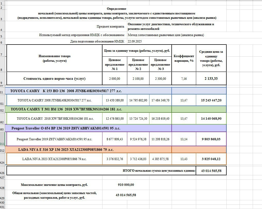В закупке нас заинтересовало другое – оценка стоимости работ и деталей на автомобили. Так, в документах максимальный ремонт (запчасти, работа и т.д) Toyota Camry 2008 года чиновники оценили в 15,2 млн рублей (сейчас такие машины продают до одного млн рублей). Аналогичная модель японского производителя, но с менее мощным двигателем и 2018 года выпуска оценили в 14,1 млн рублей. Микроавтобус Peugeot Traveller был оценен в 9,8 млн рублей, а «Нива» в 3,8 млн рублей.