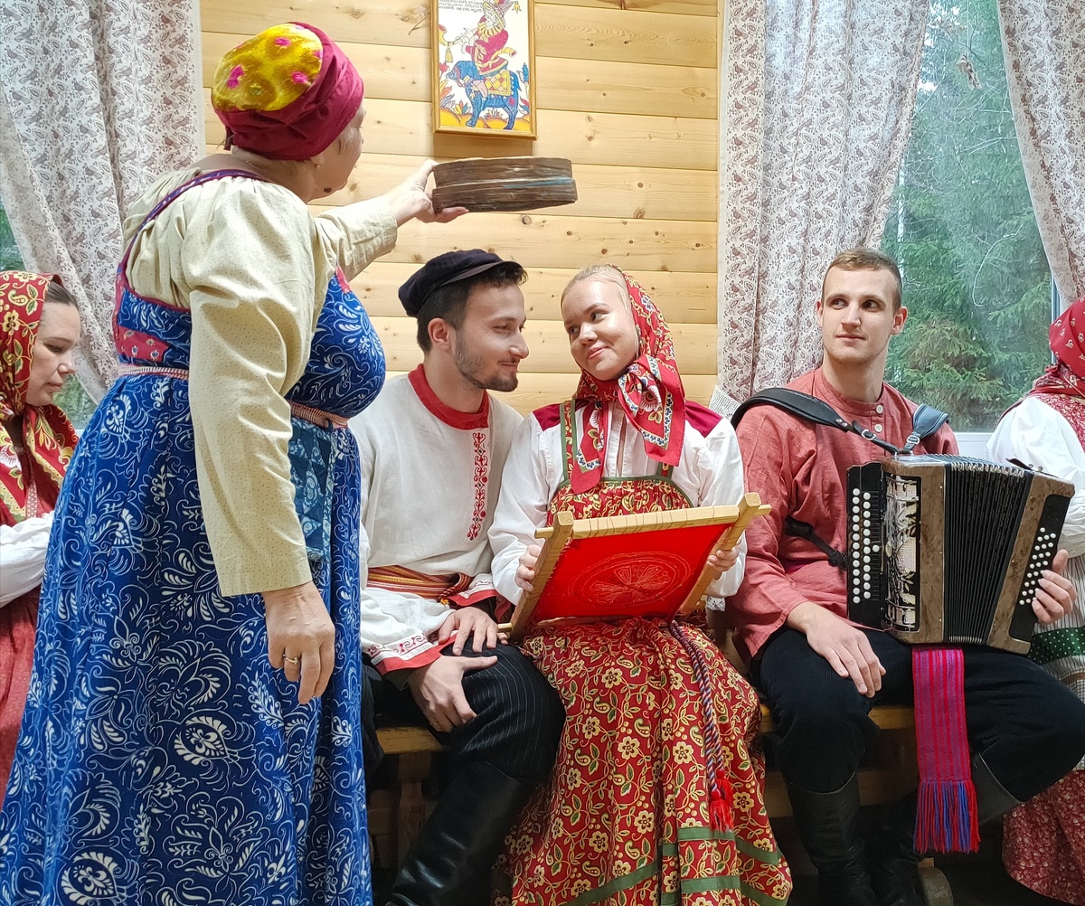 С наступлением холодов молодёжные гулянья переносились с улицы в дом. В деревнях проходили разные вечёрки: молодёжные – самые весёлые, с гармонью; женские – с разговорами, сказками, быличками и частушками «под язык»; большие – совместные, где матери присматривали для своих сыновей невест. Фрагмент разных посиделок гости музея-заповедника смогли увидеть в воскресенье в творческой мастерской.
