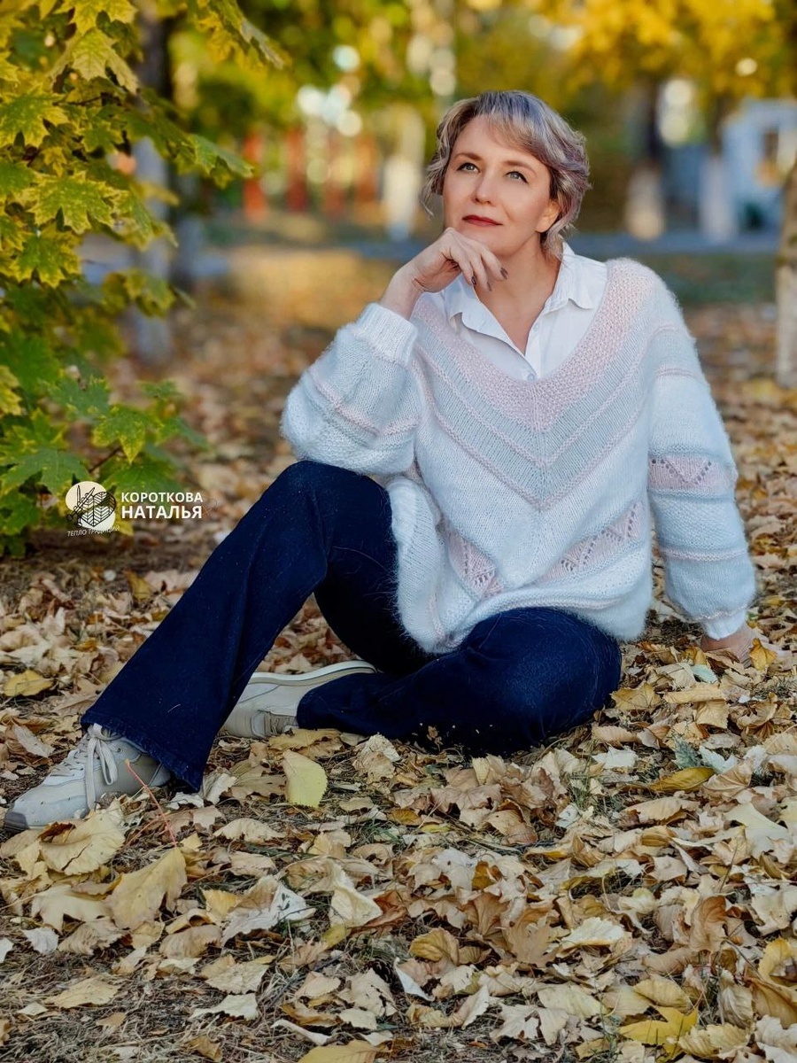 Свитер- пуловер из пяти видов пряжи " Не в сказке сказать " .Самая романтичная модель женского пуловера «Чайка» известна еще с 80 - х годов