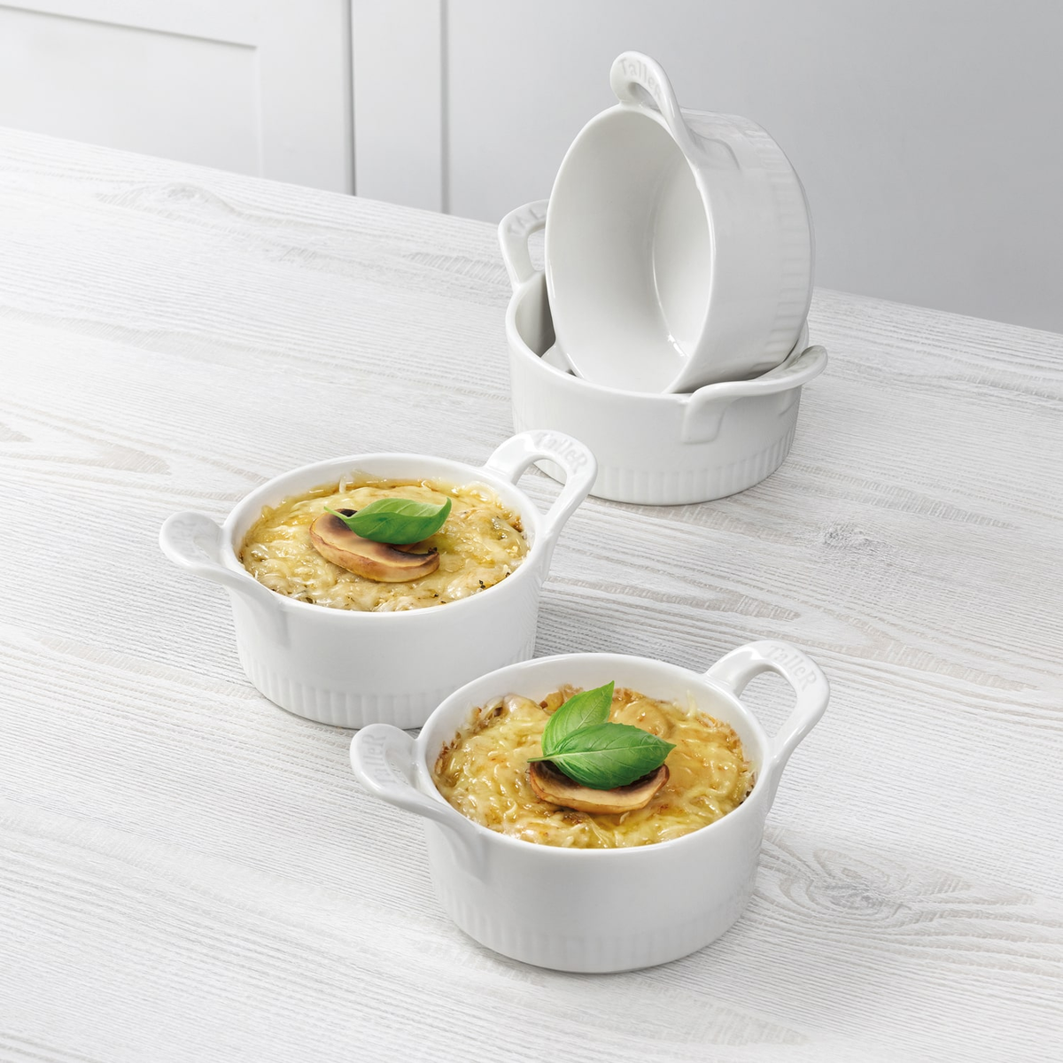 Формы подходят для создания десертов: тортов, пирожных, крем-брюле или панакоты, а также для горячих закусок вроде жульена. Но на этом их возможности не заканчиваются — используйте их для порционной сервировки салатов, легких закусок, подачи джемов, соусов или других блюд.