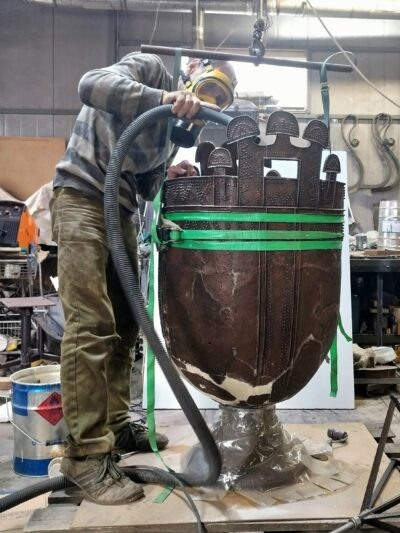 Для восстановления артефакта использовались различные пластиковые композиционные материалы, смолы и клеи. В итоге, удалось реконструировать форму, восполнив недостающие части. По словам реставратора, у тулова котла утрачено порядка 15% общей площади, а в основании отсутствовало две третьих части».