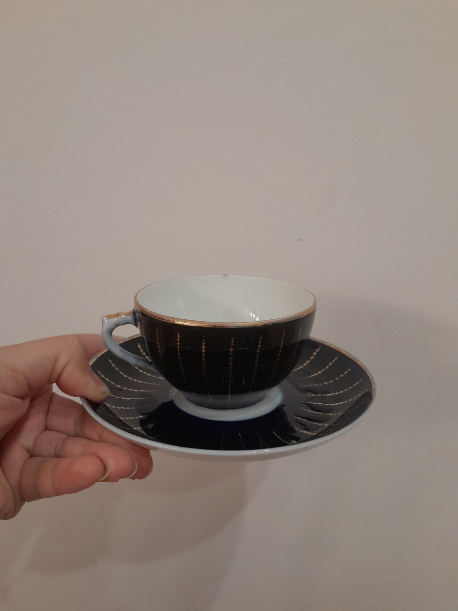 Чайная пара, кобальт, форма Киевская.