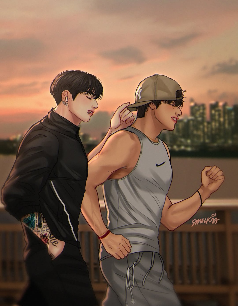 Что происходит на берегу реки Хан? Кажется, там поселился Тэхён, превратив его в личную беговую дорожку! Подписывайтесь, в Телеграм-канале будет публиковаться много нового контента! Ссылка: https://t.me/koreiskiyeralash Берег реки Хан, похоже, превратился в эпицентр к-рop фитнеса! Тэхён, наш неутомимый Ви, вновь замечен на пробежке, но стоп… Кто эти прекрасные принцы, составляющие ему компанию? Не успели Арми составить списки лучших друзей из Wooga Fam, как… "Обнуляем информацию!" Вжух! Реальность оказалась ещё более звёздной: рядом с Тэхёном теперь блистают актеры Сон Кан, Ким Ён Дэ и Джэхён из NCT! Да уж, круг друзей у нашего Тэхёна широк и разнообразен. Похоже, дружить с ним – это как каждый раз открывать новую коробку шоколадных конфет: никогда не знаешь, с кем сегодня он будет делить берег реки Хан! И нельзя не отметить, парни как на подбор! Все красавчики, все как один - достойны обложек журналов. Сразу видно, Тэхён знает толк в хорошей компании! Хочется верить, что эти пробежки