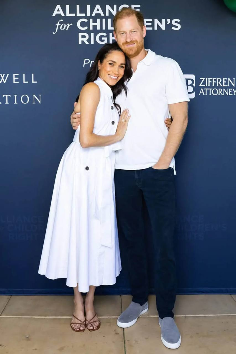 Гарри и Меган посетили благотворительный теннисный турнир имени Джорджа Зайфена в Лос-Анджелесе. Они выглядят счастливыми и довольными жизнью. Для этого мероприятия образы пары стилисты логично сделали в теннисной эстетике. Теннисный стиль сейчас находится на вершине трендов. Это простая, молодящая, комфортная, удобная и эстетически приятная одежда считается стилем обеспеченных людей. Подобрать все вещи себе в этом стиле сейчас совершенно не сложно, они продаются во всех магазинах. Можно найти варианты недорогие по цене, так что этот стиль может позволить любая женщина. Давайте посмотрим, какие образы в теннисном стиле сделали себе Гарри и Меган, разберем хорошие моменты и то, что надо исправить. Теннисный стиль помог им выглядеть свежими и довольньіми. Гарри в белом поло без надписей и рисунков, в темно-синих брюках чинос и серых теннисных туфлях на трендовой высокой белой подошве. Этот простой и комфортный образ хорош не только для мужчин. Женщины тоже могут взять его себе на замет
