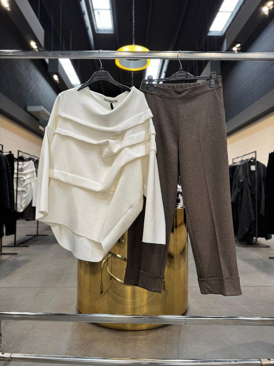Брюки в мелкую клетку с подворотом в коричневом оттенке 🤎