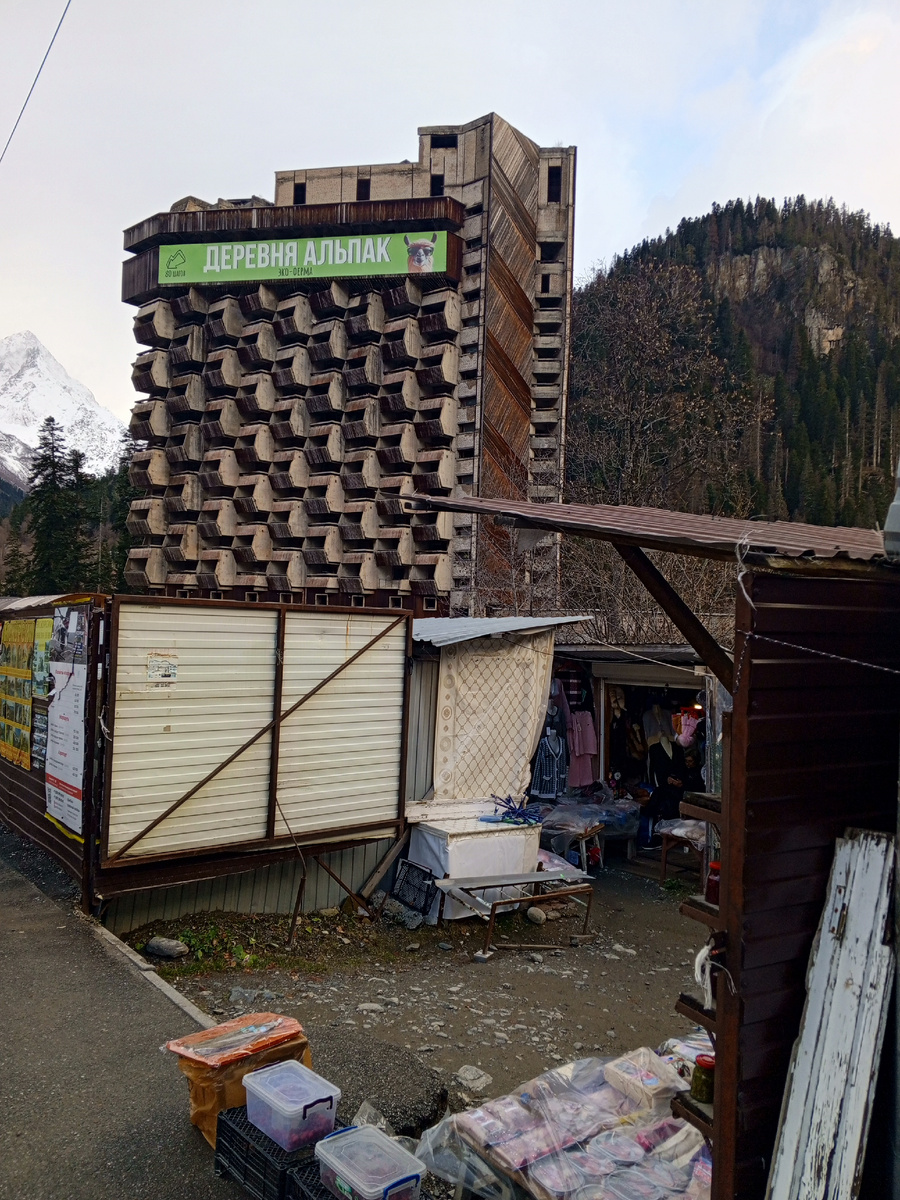 Всех приветствую на своём канале! Вчера случайно узнала о том, что в Домбае снесли один из самых известных объектов советской архитектуры, построенный в 1985 году. Речь идет о знаменитой гостинице "Аманауз", которая находилась в самом центре курортного поселка.