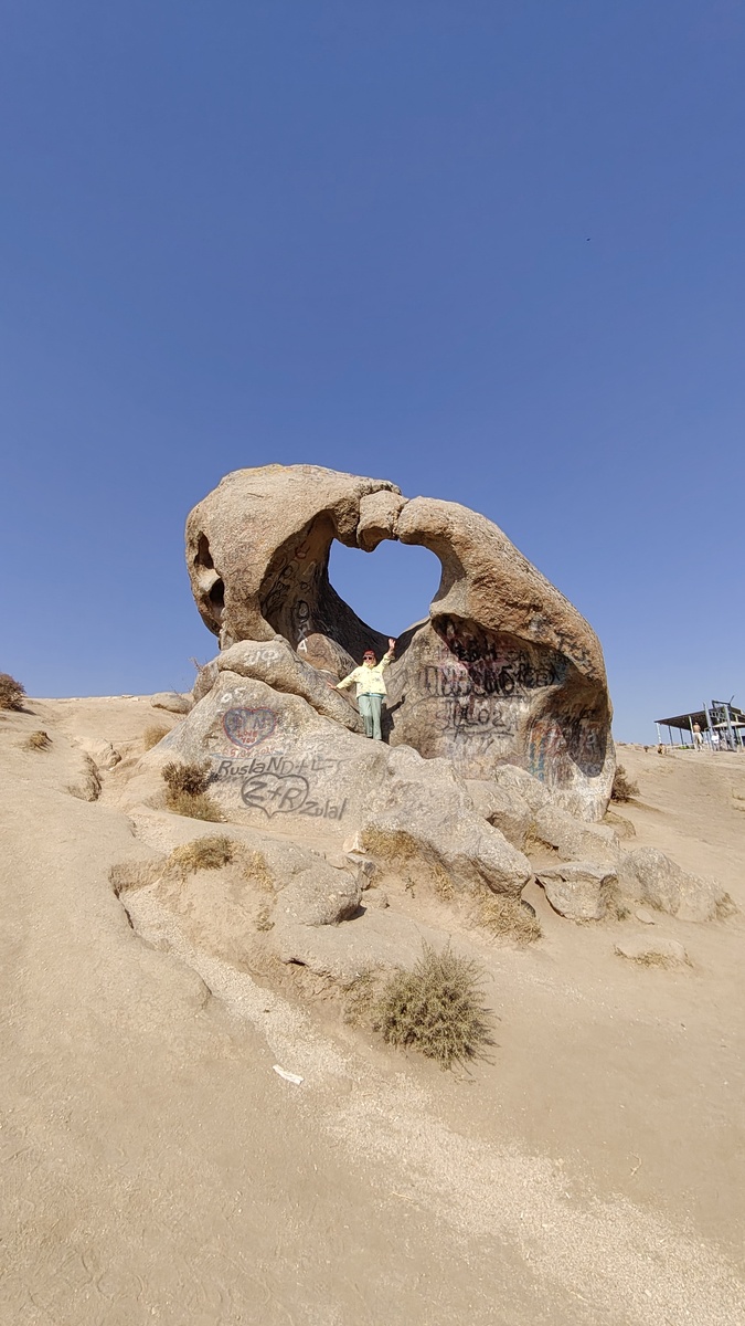 Это же из песни, давно знакомой. Группа "Ялла". Разве я тогда думала, что увижу этот город🫢. А вот -случилось! Место, где родился Амир Темур. Здесь же он построил для себя Мавзолей. Но не лежит он там. В Шахрисабз мы ездили с хозяином нашего отеля Насруллой. И это снова был день счастья♥️. Замечательная поездка! Уже то, что ехать через перевал в горах, для меня большая радость! Заехали по пути на то самое место, где мы с Аллочкой были, когда Насрулла возил нас на свадьбу, базар в Ургуте и и в свой родной кишлак. Но ведь Лариса не была. Это где фильм снимался о Чингачгуке. Прошлый раз я была на закате и всё выглядело немного иначе. С удовольствием снова поднялась к этим камням. Очень красивое место. Красивенные виды на водохранилище и горы. Местные там отдыхают целыми семьями. Парк развлечений. Оттуда уже и пошла дорога на Шахрисабз. Ехать примерно около 2 часов. Перевал с серпантином. Высшая точка примерно 2000 метров. Дважды мы останавливались полюбоваться на горы.