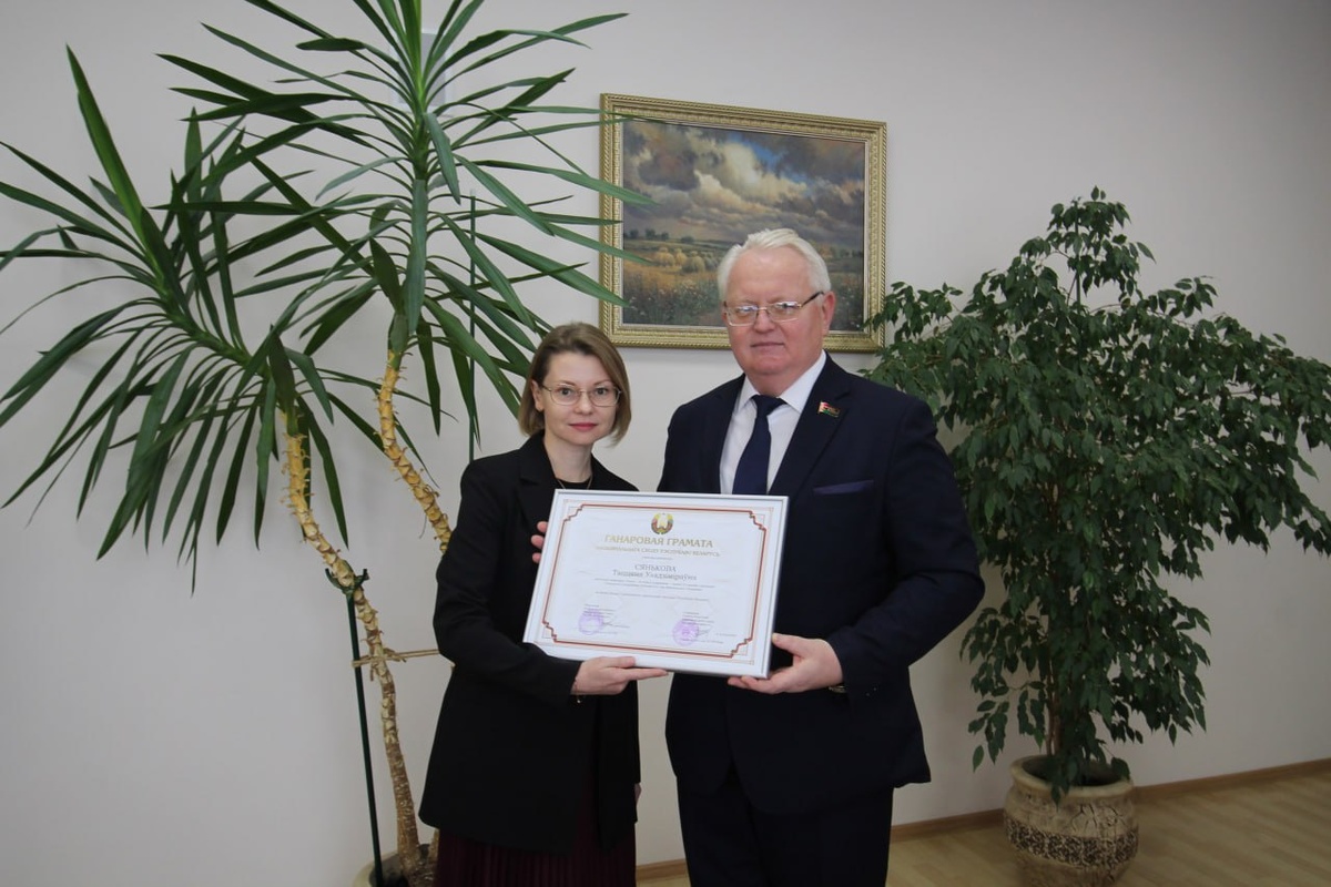 🤝 Ганаровай граматай Нацыянальнага сходу Рэспублікі Беларусь за вялікі уклад у рэалізацыю сацыяльнай палітыкі узнагароджана загадчык кафедры тэорыі і гісторыі дзяржавы і права ўстановы адукацыі «Гомельскі дзяржаўны ўніверсітэт імя Францыска Скарыны» Таццяна Сянькова.