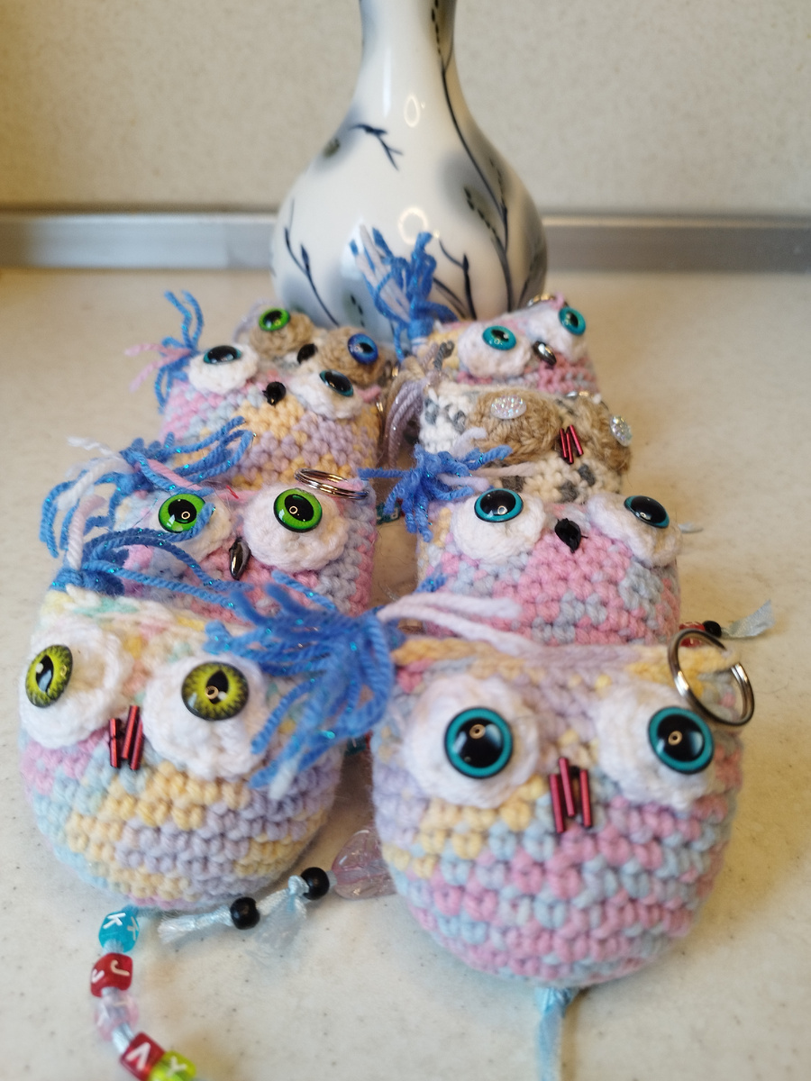 🍂🦉 Приветствую вас, мастерицы и мастера! 🦉🍂 Сегодня будем создавать чудесный брелок-сову, который отлично подойдет в качестве обвеса на сумку. Вот пошаговая инструкция: ### Материалы: - Пряжа разных цветов (для тела совы, глаз и крыльев) - Крючок (соответствующий номиналу пряжи) - Наполнитель (синтепон или хлопок) - Игла для шитья - Ножницы - Кольцо для ключей или карабин для крепления ### Описание работы: 1. **Вязание тела совы**: - Начнем с кольца амигуруми. Возможно, вам понадобится набрать 6 столбиков без накида (СБН) в кольцо. - Во втором ряду увеличиваем количество СБН: делаем 2 СБН в каждый СБН (всего 12). - В третьем ряду чередуем: 1 СБН, 1 прибавка (всего 18). - Продолжаем вязать, увеличивая на каждом ряду до 30 СБН, а затем вяжем прямым вязанием несколько рядов для достижения нужной высоты. 2. **Форма головы**: - Для создания верхней части головы совы можно сделать уменьшение: 1 СБН, 1 убавка (начинаем уменьшать до 18). - Далее вяжем 3-4 ряда без из