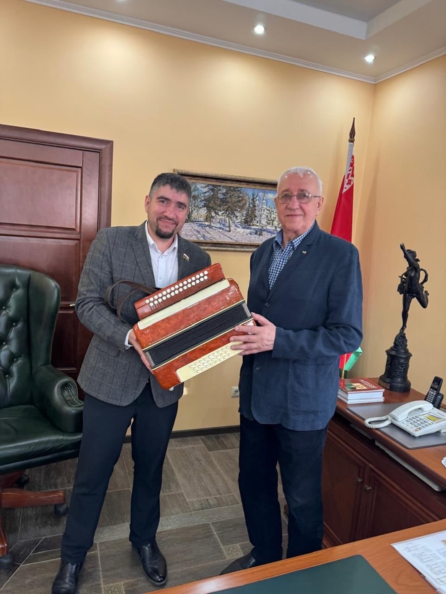 Вручил Гармонь "Беларусь" - как символ общности культуры славянских народов Генеральному Консулу Республики Беларусь Владимиру Шугле 🤝🪗 Провели рабочую встречу с Почетным Генеральным Консулом Республики Беларусь в РФ Владимиром Шуглёй. Владимир Фёдорович - человек разносторонний и весьма интересный: меценат, предприниматель, историк, поэт. Человек, много сделавший в Тюменской области для объединения и сохранения традиций и культуры славянских народов - русских и белорусов. Подарил в лице Генерального Консула белорусским землякам гармонь "Беларусь" - как символ единения культуры братских народов. Гармоника - не просто инструмент, символизирующий собой славянские песни, пляски, мотивы. Но это и настоящая хронология нашей истории. Например, минские гармони, инструменты "Беларусь" всегда отличались своим напевным, звонким звуком. Использовались в деревнях и сёлах повсеместно - на свадьбах, посиделках, празднествах. А гармонист был не просто участником праздников - но и организатором, з
