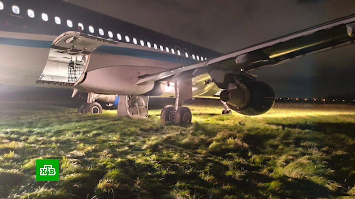 [ Смотреть видео на сайте НТВ ] Около четверти пассажиров самолета «Азербайджанских авиалиний», выкатившегося за пределы взлетно-посадочной полосы в аэропорту Пулково, отказались продолжать полет в Баку даже на резервном лайнере. После ночного ЧП в Пулково авиакомпания AZAL отправила в Санкт-Петербург резервный борт, который забрал 112 из 155 пассажиров. Остальные 43 лететь в Баку отказались. Airbus А320 «Азербайджанских авиалиний» выкатился за пределы взлетно-посадочной полосы в аэропорту Пулково в ходе экстренной посадки вскоре после взлета. Экипаж обнаружил, что не убралась стойка шасси, и решил вернуться в аэропорт вылета. Самолет сделал несколько кругов над Ленинградской областью для выработки топлива и выполнил контрольные пролеты над ВПП, благодаря чему наземные службы подтвердили информацию о нештатном положении левой основной опоры шасси. При посадке на этапе пробега, как сообщили в Росавиации, судно «отклонилось от оси взлетно-посадочной полосы и незначительно выкатилось на г