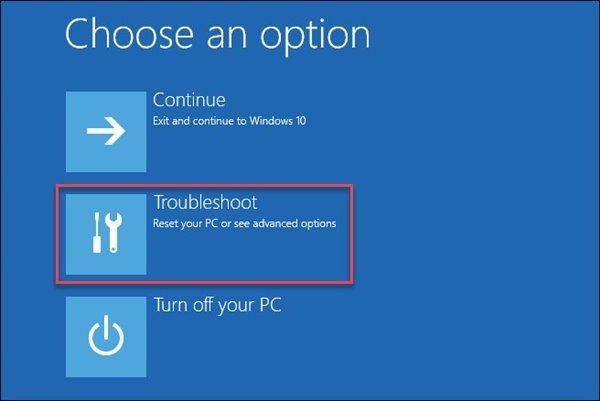 3. На экране восстановления выберите Устранение неполадок .
