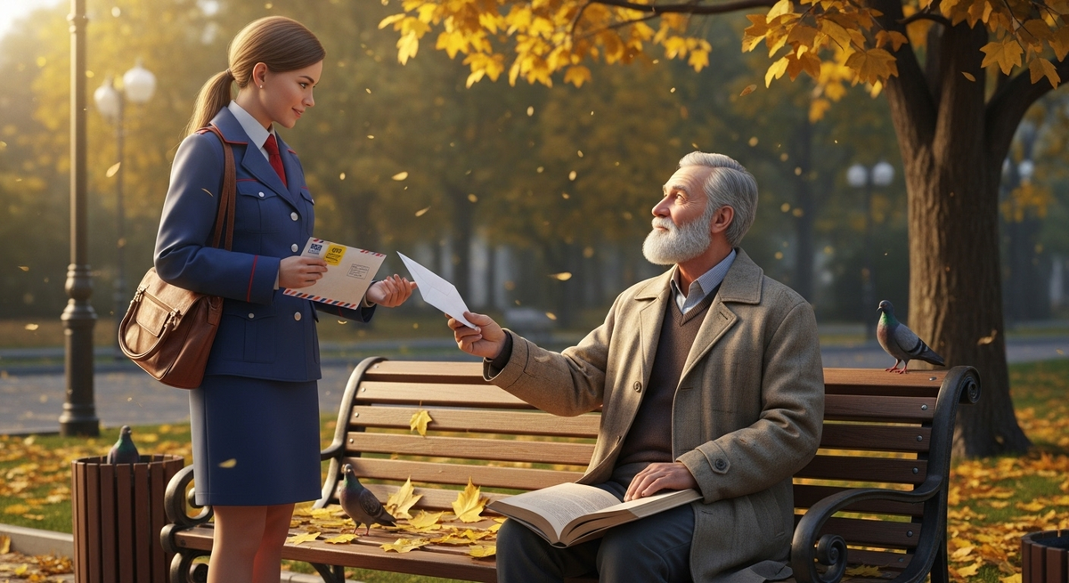 Прошла неделя. Дарья продолжала разносить письма и квитанции по привычному маршруту. Однажды, проходя мимо того самого сквера, она увидела на скамейке знакомую фигуру. Николай Сергеевич сидел с книгой, но выглядел иначе – в новом пальто, чисто выбритый, с аккуратно подстриженной бородой.