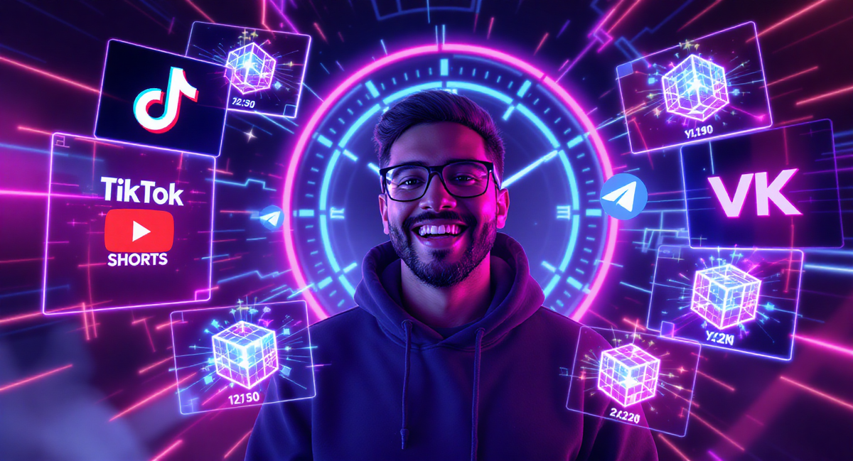 TikTok, YouTube, Telegram, VK, Дзен... Каждый день уходят на съемки, монтаж и публикации. А если я скажу, что можно тратить 1 час в день, а социальные сети будут жить полной жизнью. Секрет не в волшебной таблетке, а в грамотном кросс-постинге. Рассказываю, как настроить конвейер, который работает пока вы спите. Кросс-постинг — это не просто копипаста, это искусство превратить один кусок контента в 5 разных форматов, не теряя аудиторию. Если делать это вручную, то сойдешь с ума, а если автоматизировать, то получишь время на жизнь. Шаг 1. Готовим «сырую» идею, но помни, один контент — пять жизней. Вертикальное видео (TikTok/Reels): ваш главный актив. 1 минутный ролик = золотая жила. Длинный пост в Дзен/Telegram: текстовое сопровождение к видео. Картинка с цитатой (VK): вырезаете самый цепляющий кадр из видео и добавляете текст. Сторис/Пост с вопросом: используете тот же кадр, но просите мнение аудитории. Ролик про «5 ошибок удаленщика» сначала ушел в TikTok. Потом я вырезала оттуда ключ