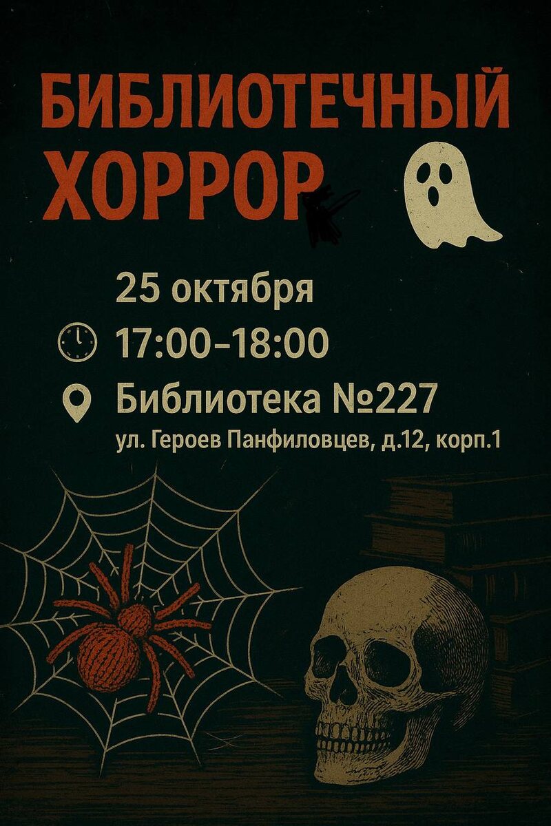🕯 НЕ ЧИТАЙ ЭТО ПОСЛЕ ЗАХОДА СОЛНЦА… 👀 📚 В Библиотеке №227 оживают самые страшные истории! 📅 25 октября 🕔 17:00–18:00 📍 ул. Героев Панфиловцев, д.12, корп.1 (Северное Тушино) Тебя ждут: 🕸 фотозона и аквагрим, 🧶 мастер-класс «Паук своими руками», 📚 выставка «Ужасно интересно». 🎟 Вход свободный 🔗 Регистрация тут #Москва #СЗАО #СеверноеТушино #Библиотека227 #ОКЦСЗАО #Хоррор #Лекция #МастерКласс #КультураМосквы #Библиотека #Библионочь #Ужасы