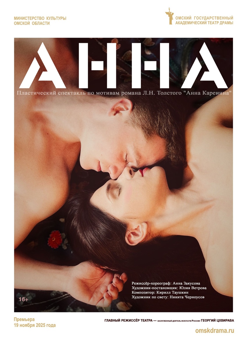 Уважаемые зрители! Через месяц на Основной сцене Омского академического театра драмы состоится премьера пластического спектакля "Анна" по мотивам романа Л.Н. Толстого "Анна Каренина" в постановке Анны Закусовой. Омский портал "Культура55" опубликовал интервью Анны Закусовой, в котором режиссер подробнее рассказала о предстоящей премьере. Полный текст интервью читайте по ссылке - https://kultura55.ru/culturedetails/anna-plasticheskaya-premera-noyabrya-omskoy-dramy Художник афиши - Юлия Ветрова Дизайнер - Ольга Ортман Фотограф - Андрей Кудрявцев Ждем вас на премьере спектакля "Анна" 19 и 20 ноября. Билеты в кассе театра и на сайте omskdrama.ru. Телефон кассы: 24-40-65. Телефоны бронирования билетов: +7-913-150-61-32 (What's app); +7-913-150-61-45; +7 913-150-61-39; +7(3812) 24-39-62; +7(3812) 24-32-12.
