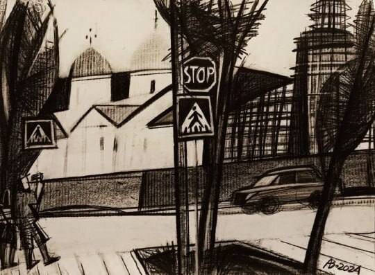 Авангардные зарисовки Петербурга от Андрея Ветрогонского. Черно-белые работы Андрея Ветрогонского — это, прежде всего, графика, в которой отсутствие цвета не создает мрачности, а наоборот усиливает выразительность и динамику изображения. В этих произведениях художник фиксирует окружающую действительность в формате «живого» изображения, передавая момент времени с большой точностью и экспрессией. Основной акцент ставится на ритм и движение, контраст между статическим и изменяющимся. Линии в работах могут быть резкими и жирными или едва намеченными, создавая ощущение недорисованности и в то же время очень живого, живого сюжета.