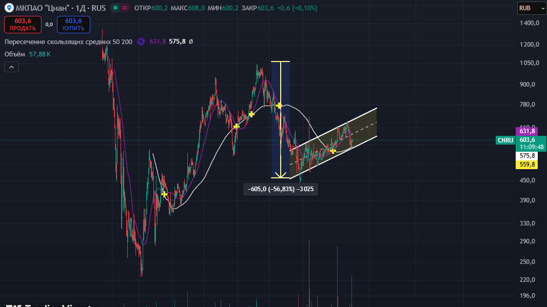 Краткосрочный тренд нисходящий. 📊 В данный момент строит флаг. ✔️Нижняя стенка флага 580,2, как только пробьет и закрепится пойдёт отрабатывать фигуру. ➡️ Сейчас Есть шанс немного сходить наверх, если хватит объемов, протестировать средний уровень 650, если пробьет, то верхняя стенка флага 729, её нужно пробить, чтобы сломать фигуру. НЕ ИИР