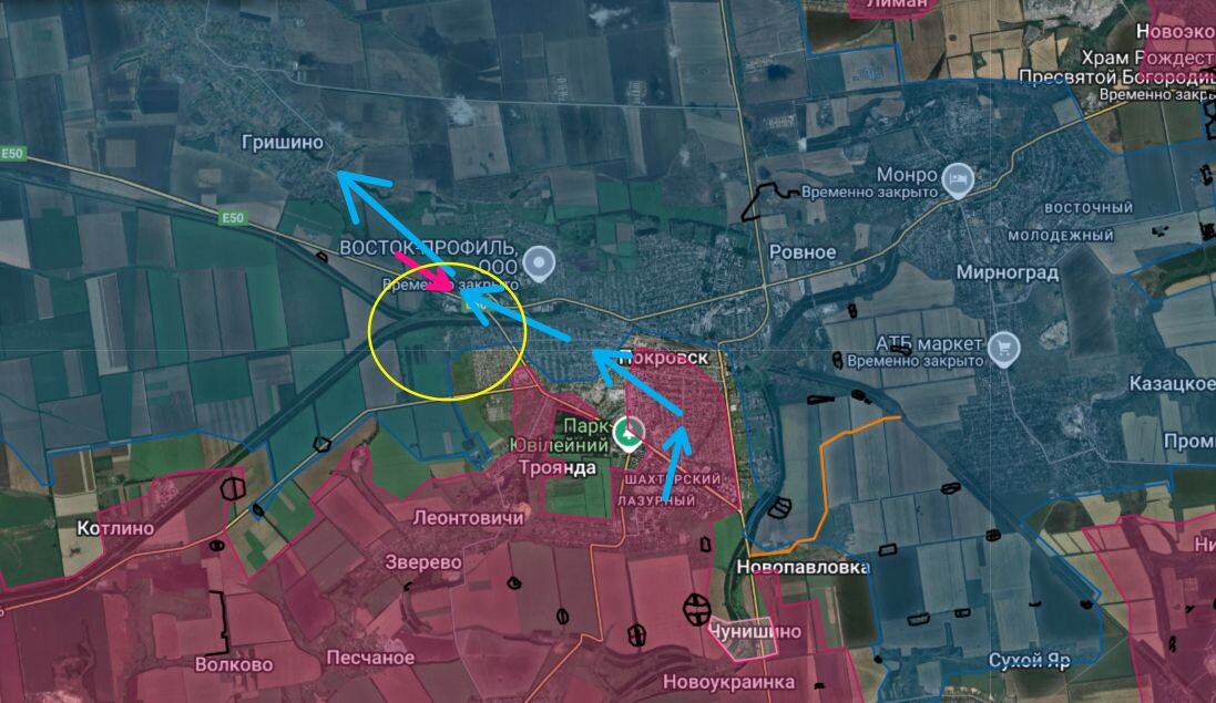Российская армия продолжает взламывать оборону ВСУ в оккупированном Красноармейске (Покровске) и продвигается в городе. Украинский официоз пока хранит молчание по этом поводу, изредка заявляя о тяжелой, но якобы контролируемой ситуации, передает корреспондент «ПолитНавигатора». Правда, украинские военные на местах достаточно пессимистичны «Западная часть Покровска фактически потеряла боевую целостность – она провалилась, большая часть там уже под давлением противника, остается небольшой клочок серой зоны, где еще ведутся схватки. Там враг активно наращивает свои силы и укрепляет позиции в укрытиях — ситуация на западе выглядит как начало постепенного сжатия пространства наших подразделений», – описывает ситуацию бывший ультрас-неонацист луганской «Зари» с позывным «Мучной», ныне офицер ВСУ на этом направлении. Он признает, что «в центральной части города идут очень жесткие бои», отмечая, что «растет вероятность тактической ротации или частичной эвакуации подразделений» (читай – отступ