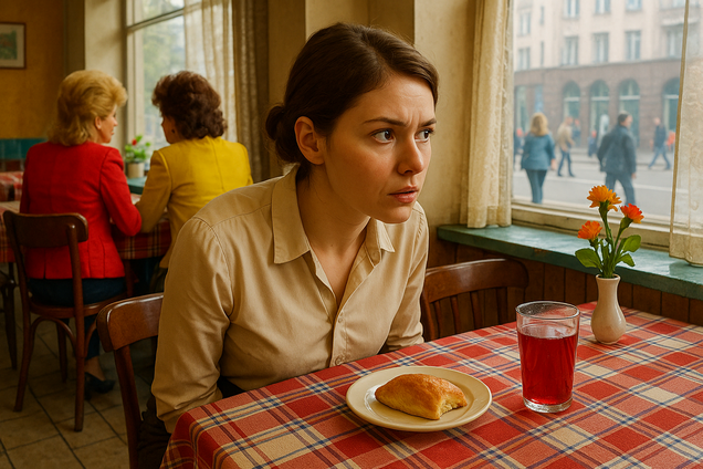 Интерьер напоминал советскую столовую, только с претензией на уют: клетчатые скатерти, пластиковые цветы в вазочках, запах жареного лука и кофе.