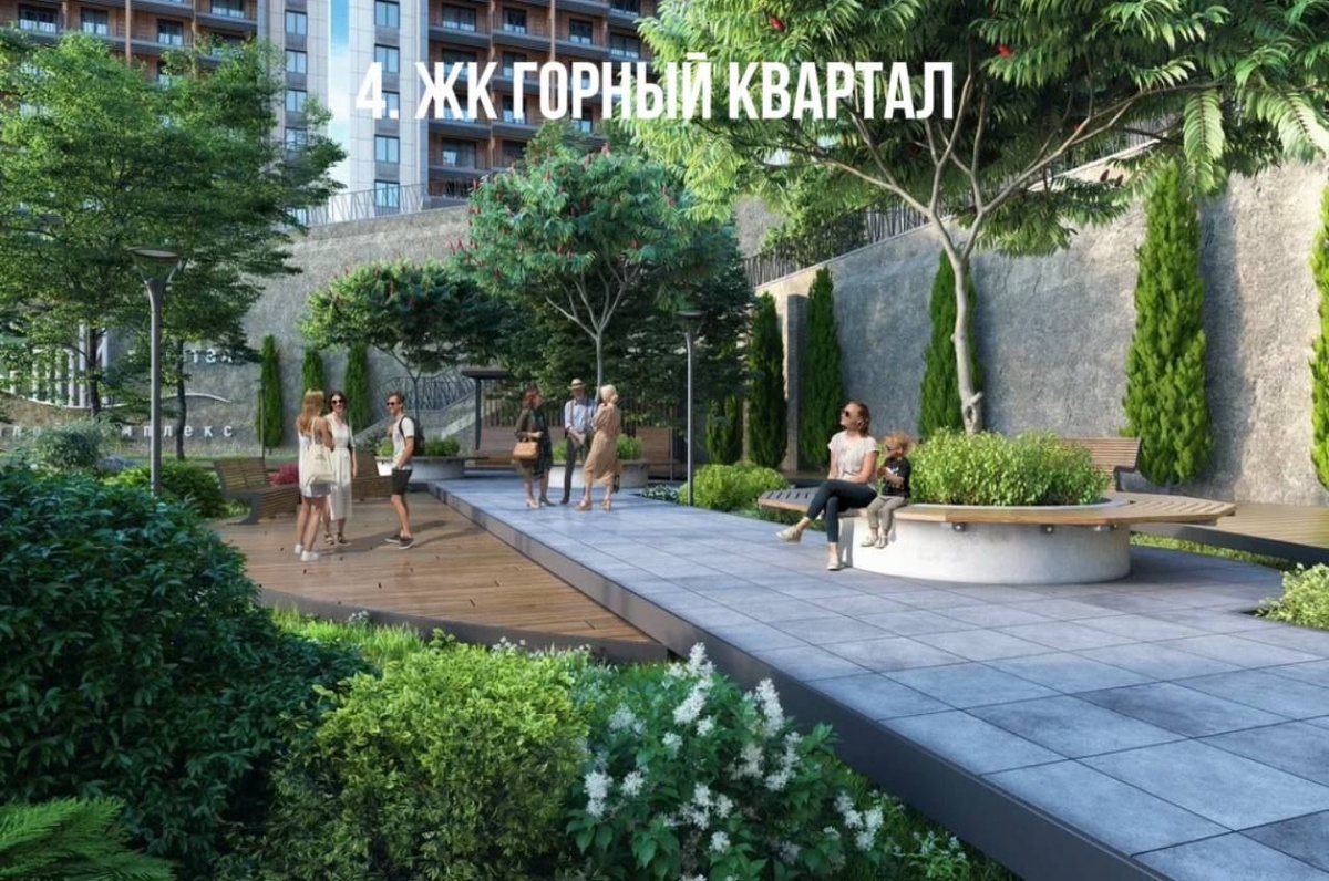 Комплекс бизнес‑класса в окружении природной красоты: горы, горная река и много зелени. Строится по комплексному развитию территории — это значит, что школа, садик и другие блага будут построены в этом же районе.