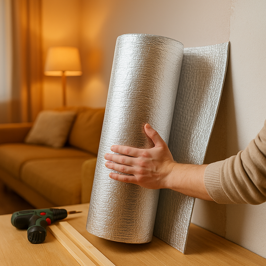 - Тонкий слой отражающей подложки (не тонкой фольги из супермаркета, а нормального вспененного полиэтилена 3–5 мм с металлизированной пленкой).