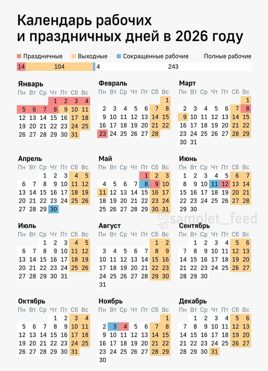 В 2026 году нас ждут 118 выходных и праздничных дней!