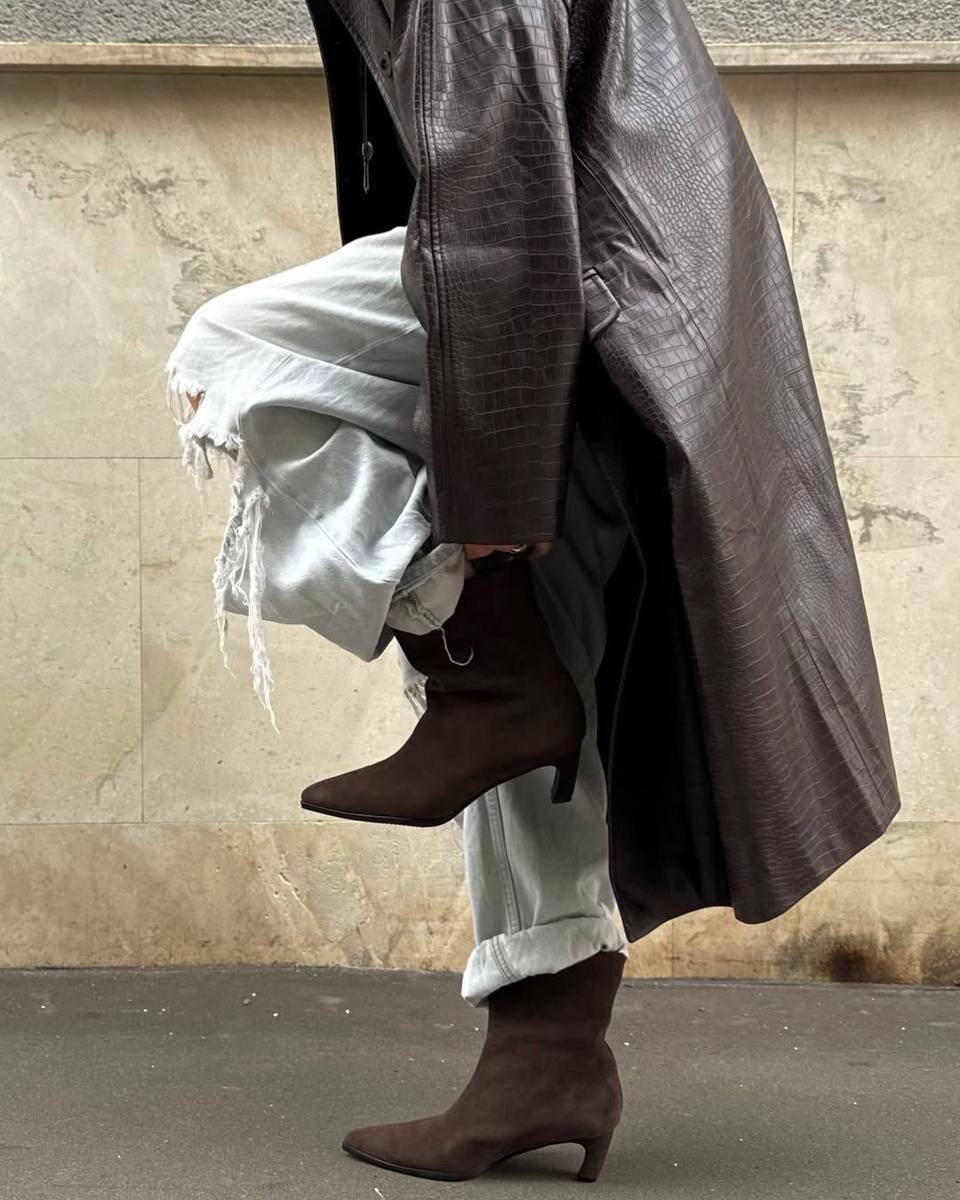 Ботильоны — мастхэв осенне-зимнего обувного гардероба. Их легко можно комбинировать с трендовыми скинни, широкими брюками, любыми юбками, модными прямыми джинсами. Главное, выбирайте модели с острым или трапециевидным мысом — они смотрятся современнее. Каблук должен быть низким и удобным, потому что именно в таких парах вы сможете легко проходить целый день и чувствовать себя комфортно. Что касается цветов, то в приоритете черные, шоколадные, бордовые, оливковые и графитовые варианты. Grazia