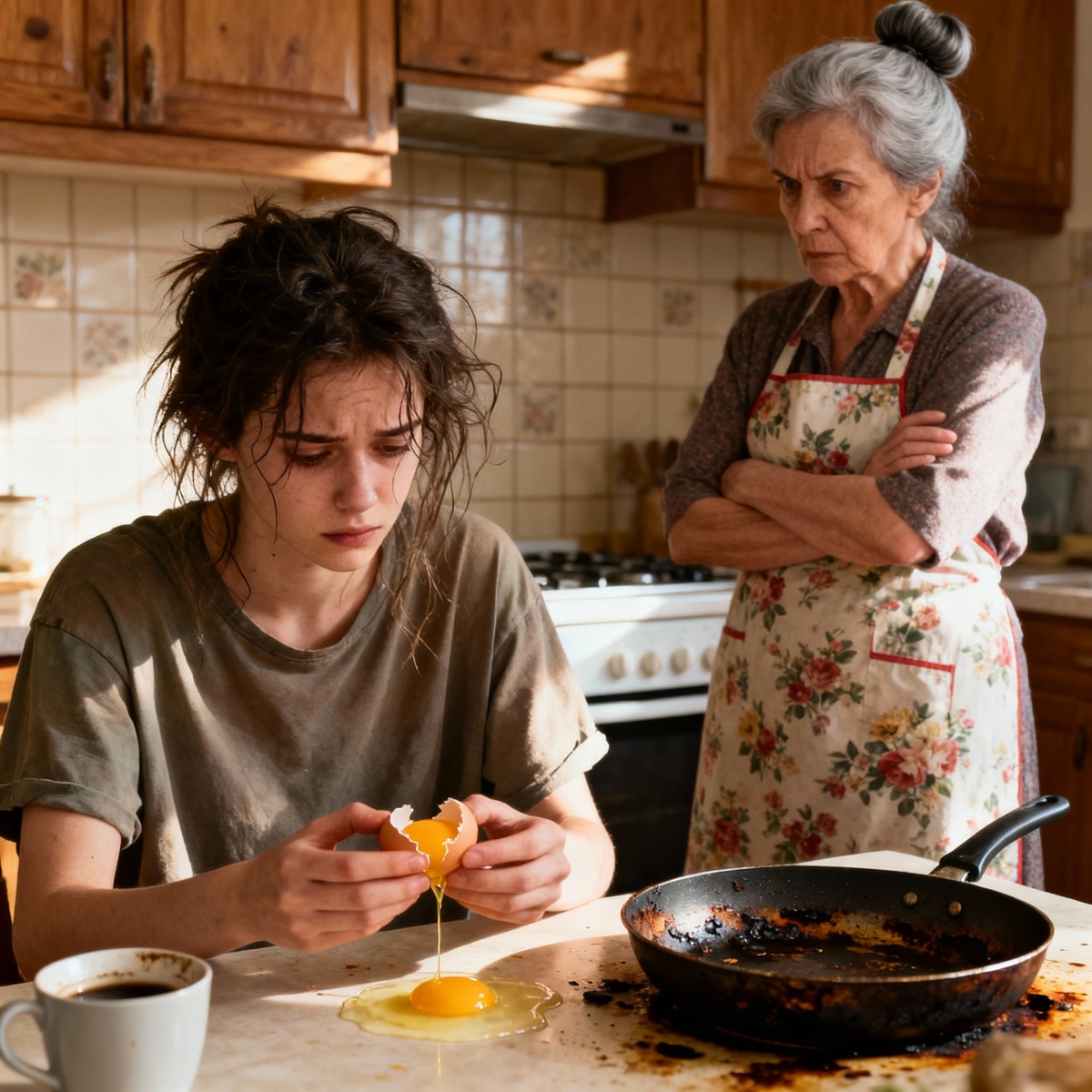 Елена Ивановна вышла из комнаты ровно в шесть, как по будильнику. Ее тапочки шаркали по линолеуму, а голос разнесся эхом: "Завтрак готов? Я есть хочу, всю ночь не спала". Анна стояла у плиты, пытаясь жарить яичницу, но руки не слушались. Масло зашипело слишком громко, и она обожгла палец о горячую сковороду. Боль пронзила руку, как молния, и яйцо выскользнуло из пальцев, шлепнувшись на пол — желток растекся желтым пятном, смешавшись с крошками хлеба.