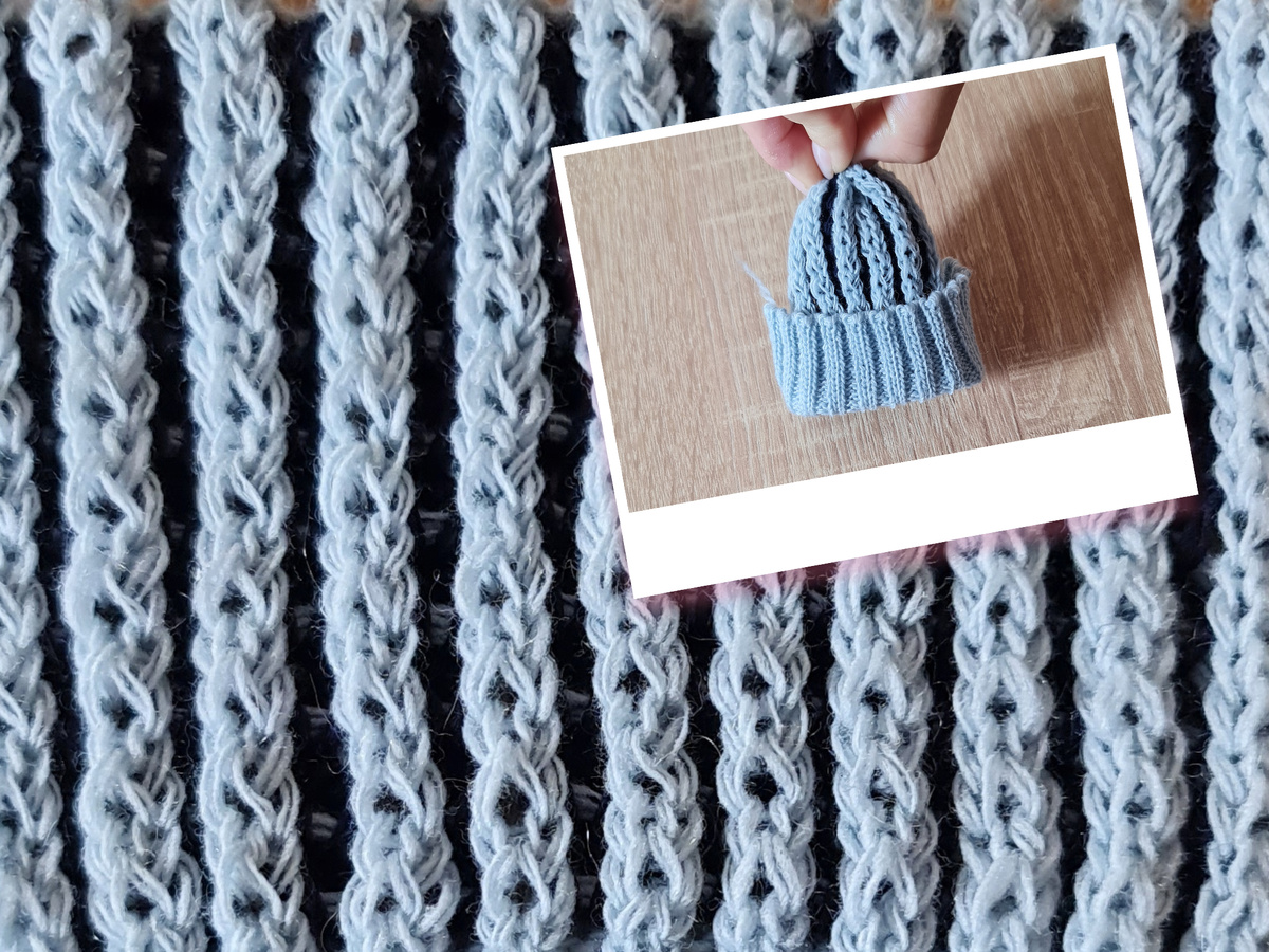 два цвета: голубой, темно-синий. ✔️ Переплетения: ✔️ Переплетение уравновешенное, не закручивается, поэтому прекрасно подойдет не только для шапки, снуда, но и для шарфа. ✔️ Переплетение имеет две разные, зеркальные по цвету, но одинаковые по структуре стороны. ✔️ Полотно получается толстым даже при вязании из тонких нитей, поэтому отлично подойдет для изделий, предназначенных на холодный сезон. Обратите внимание, насколько объемнее выглядит данный прессовый узор в сочетании с обычно