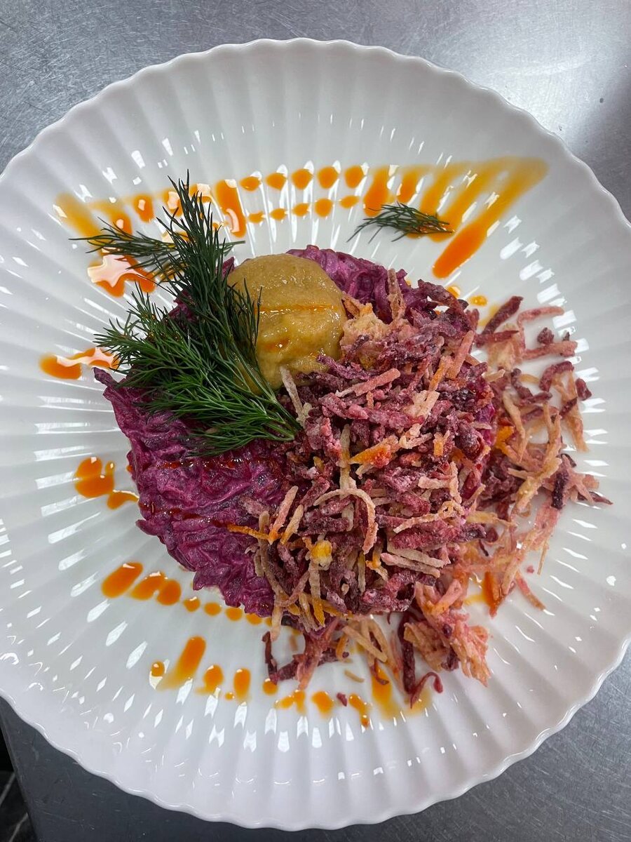 Селедь под шубой ,заправка на творожном сыре Президент +сметана ,украшено картофель пай и свекла пай +икра селеди