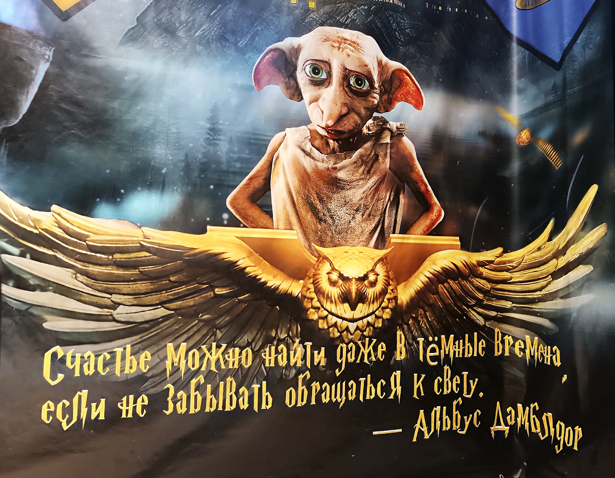 Приветствую поклонников вселенной Гарри! Знаю, что далеко не все из моих подписчиков увлечены этой темой, но не могу не поделиться с вами эмоциями пережитых выходных))). Осень, хмурые дождливые дни, скапливаются проблемы разного плана... И именно в такие моменты нужно держать в мыслях золотые слова Дамблдора: Счастье можно найти даже в темные времена, если не забывать обращаться к свету. Вот таким лучиком в сумерках ежедневной рутины и стал поход на выставку. Мы давно не могли выбраться на девичьи посиделки с подругой, а тут наконец-то, совпали планы у обеих. И параллельно было решено вернуться в пору нашей юности с помощью волшебного мира Хогвартса. Да-да, хоть мы уже тётеньки возраста сорок-плюс, настроения ожидания чуда и сказки не теряем))). Как всегда, на входе нас встречает множество атрибутов и мелочей из сказки! Именно благодаря им создается полное погружение в волшебный мир! В прошлом году эта выставка уже приезжала в наш город и была посвящена первой части истории о юном волш